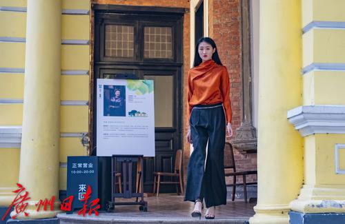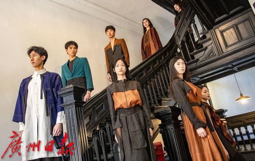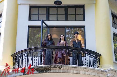 在沙面大街39号这座西方新古典主义风格的历史建筑内,模特们身着香云纱定制服装款款走来,复古与现代时尚巧妙结合