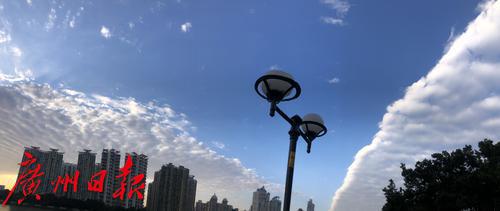 今早(27日),不少广州市民发现,天空出现“一半天空一半云”的景象,你拍到了吗?对于“一半天空一半云”景象,广东省气象公共服务中心通过“@广东天气”微博账号回应,表示这种景象是因干冷和暖湿两股不同气团交汇而形成的。