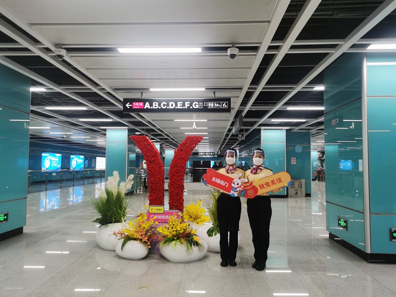 信息时报讯 (记者 王思雨) 12月28日首班车起,广州地铁八号线西村站正式开门迎客。站内设置了如新年花束般的打卡点,不少市民专程前往西村站打卡拍照。作为五号线与八号线的换乘站,八号线西村站开通后,五号线、八号线的通达性将大幅度提升,同德围居民今后前往环市路、珠江新城等地将享受极大的便利,八号线沿线居民出行也将更加便捷。