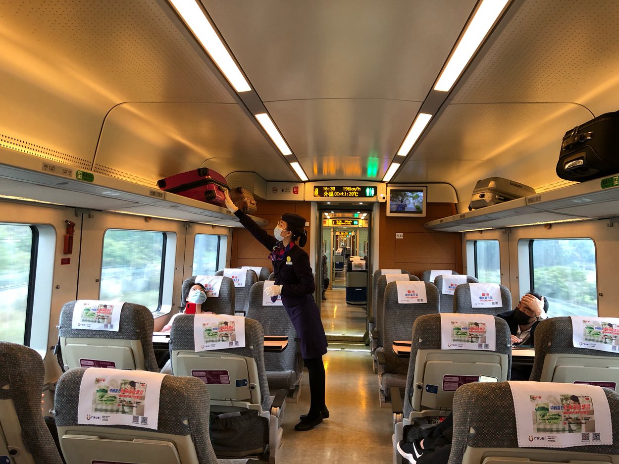 “复兴号动车组车厢空间更宽敞,配备了无线网络、多功能充电插座、轮椅存放区、大件行李存放处等,乘车体验更舒适、更美好,受到广大旅客的喜爱和追捧。”中国铁路北京局集团公司北京客运段京广高铁车队列车长孙梦楠说。