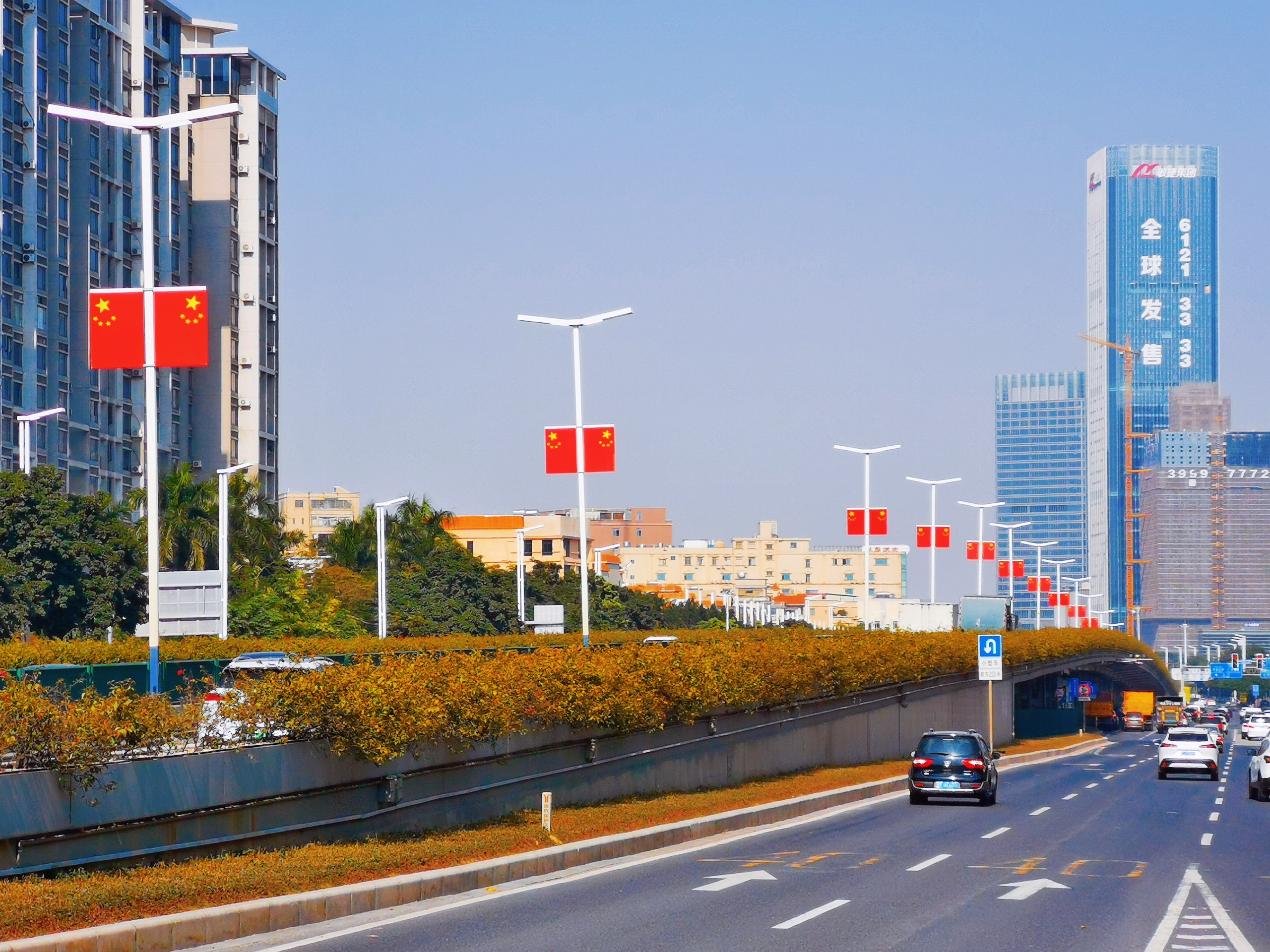 番禺大道里仁洞高架桥段的国旗