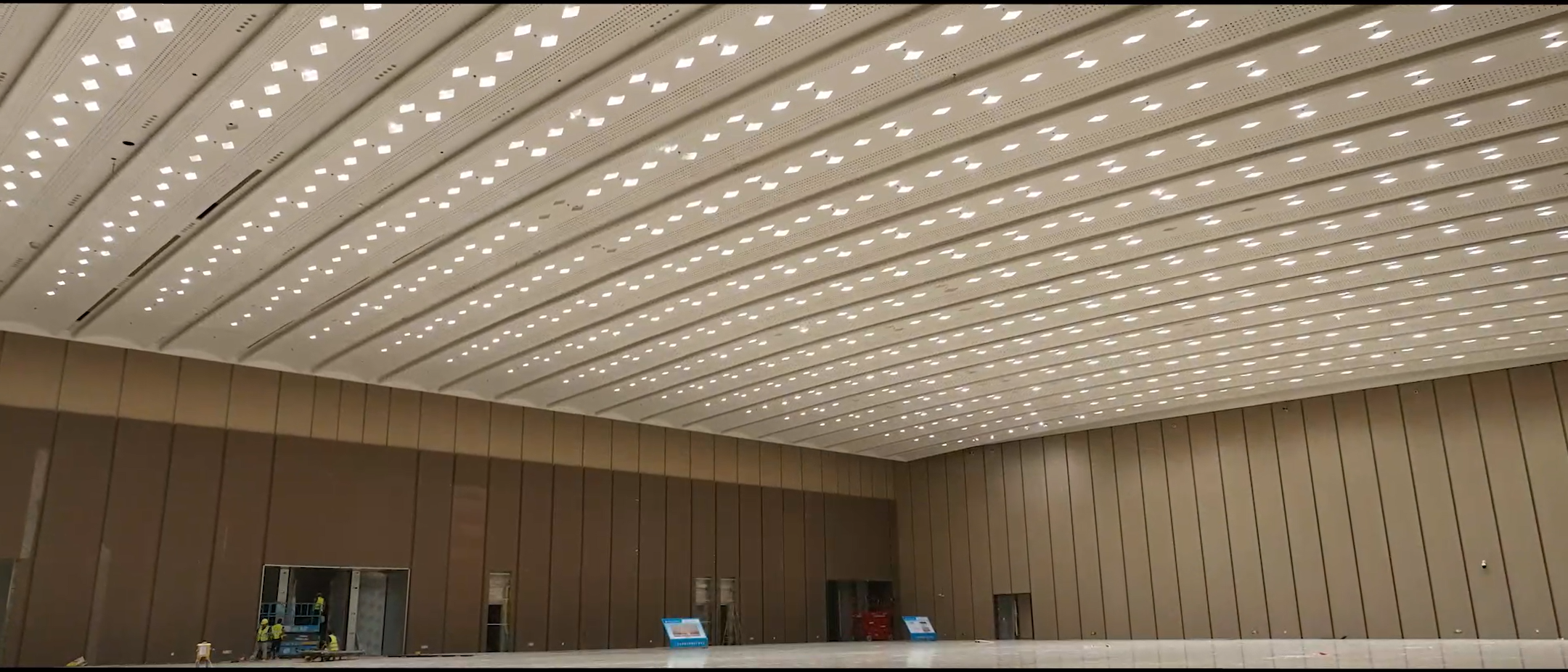 中建八局项目团队采用传承+创新的建设思路,在形式和风貌上与一和二期展馆保持一致,同时优化了空间体验感受。采用双首层的概念,东登录厅二楼精品展厅以“航海”为主题,整体设计灵感源自“海上丝绸之路”上劈波斩浪为国际贸易奔走的片片船帆。取船帆的形融于天花当中,在展厅上空缓缓伸展铺开,如船迎风而行;经典的花窗造型与天花结合,以镂空的方式呈现,既解决了天花照明的问题,也丰富了空间内涵。精品展厅室外建设有连接A区展馆的珠江散步道连廊,可实现展馆间无缝对接。