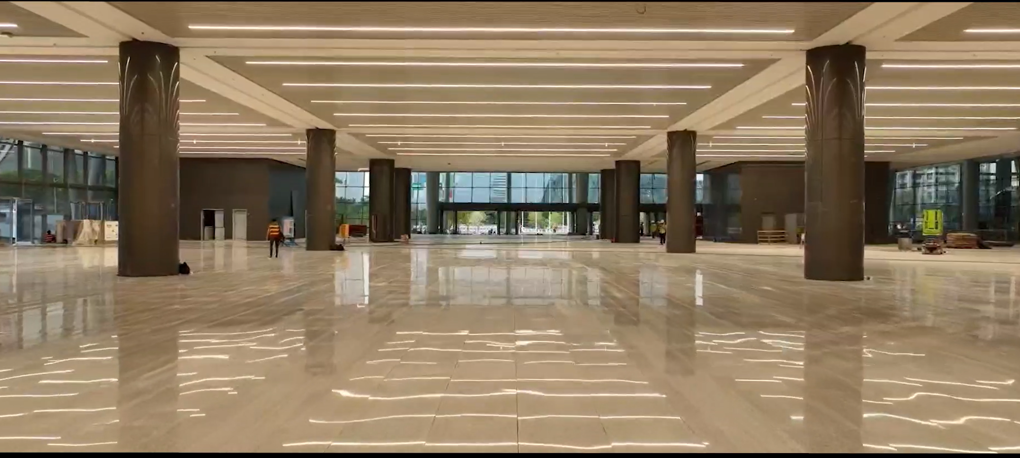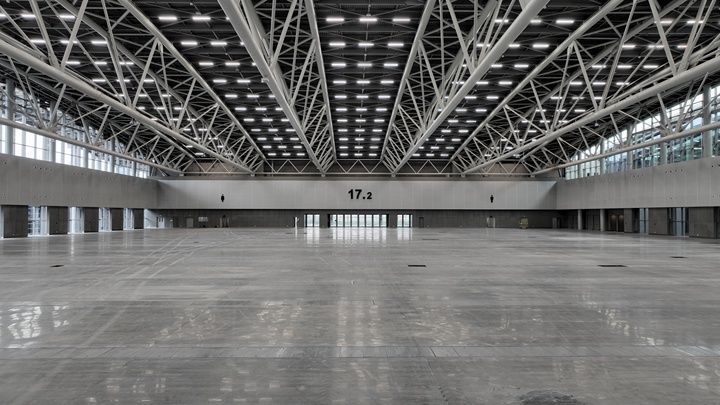 广交会四期展馆位于原广交会一二期展馆西侧,外形延续银灰色外观和“飘”逸的曲面屋面造型,与原展馆交相辉映、连城一线,形成稳重连贯、恢弘大气的整体效果。中建八局项目团队在形式和风貌上与一和二期展馆保持一致,同时优化了空间体验感受。采用双首层的概念,定性为多层展览建筑,共有8个展厅,总展览面积达到12万平方米。扩容展馆一层空间高达16米,为超高展示空间,设计承重高达每平方米5吨;二层空间均为无柱结构,采用全通透空间,满足大型机械展使用要求。东登录厅是集登录厅、精品展厅、餐厅等功能为一体的高层公共建筑,总建筑面积约9600平方米。一楼设置有办证大厅,规划有地下通道连接新港东地铁站,可实现与公共交通设施的无缝连接。