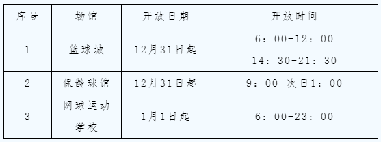 12月30日,记者从广州天河体育中心获悉,近期,广州天河体育中心将有序恢复篮球城、保龄球馆、网球运动学校正常开放,具体开放时间如下:
