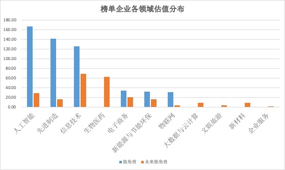 从估值上看,最“值钱”的“独角兽”创新企业主要集中在人工智能、先进制造和信息技术;“未来独角兽”创新企业则集中在信息技术和生物医药。