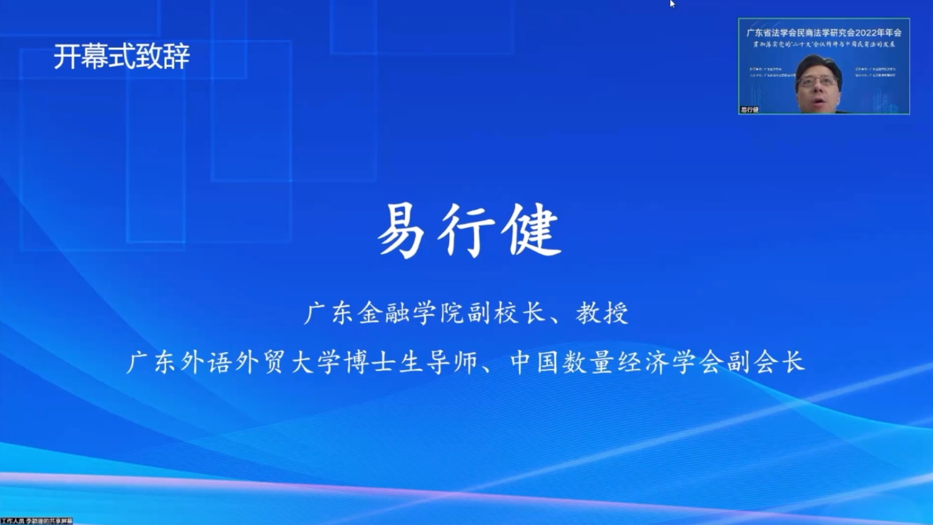 近日,广东省法学会民商法学研究会2022年学术年会暨换届选举大会以线上会议的方式召开。本次会议在广东省法学会的指导下,由广东省法学会民商法学研究会主办,广东金融学院法学院承办,广东天穗律师事务所协办。来自广东省内外高校、科研机构的专家学者,以及法官、律师等实务人士共170余人在线参加了本次会议。同时,会议还在网络平台进行了同步直播,观看在线直播的人数近千人。据了解,会议共收到240余篇参会论文,创历年年会之最。