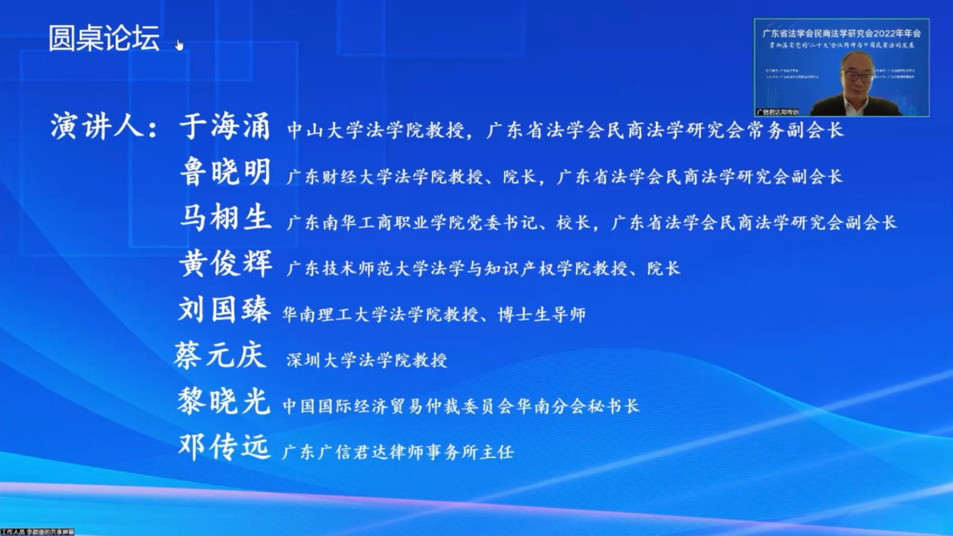 近日,广东省法学会民商法学研究会2022年学术年会暨换届选举大会以线上会议的方式召开。本次会议在广东省法学会的指导下,由广东省法学会民商法学研究会主办,广东金融学院法学院承办,广东天穗律师事务所协办。来自广东省内外高校、科研机构的专家学者,以及法官、律师等实务人士共170余人在线参加了本次会议。同时,会议还在网络平台进行了同步直播,观看在线直播的人数近千人。据了解,会议共收到240余篇参会论文,创历年年会之最。