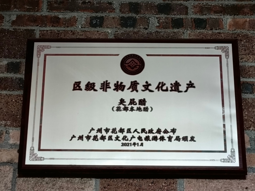 “酒香不怕巷子深。”2021年1月5日,花都区发布第五批区级非物质文化遗产代表性项目名录,其中臭屁醋(花都本地醋)作为传统技艺榜上有名,黄伟华也被确立为广州市花都区级非物质文化遗产臭屁醋(花都本地醋)传承人。