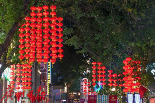 北京路步行街上大红灯笼高高挂,节日气氛浓郁。