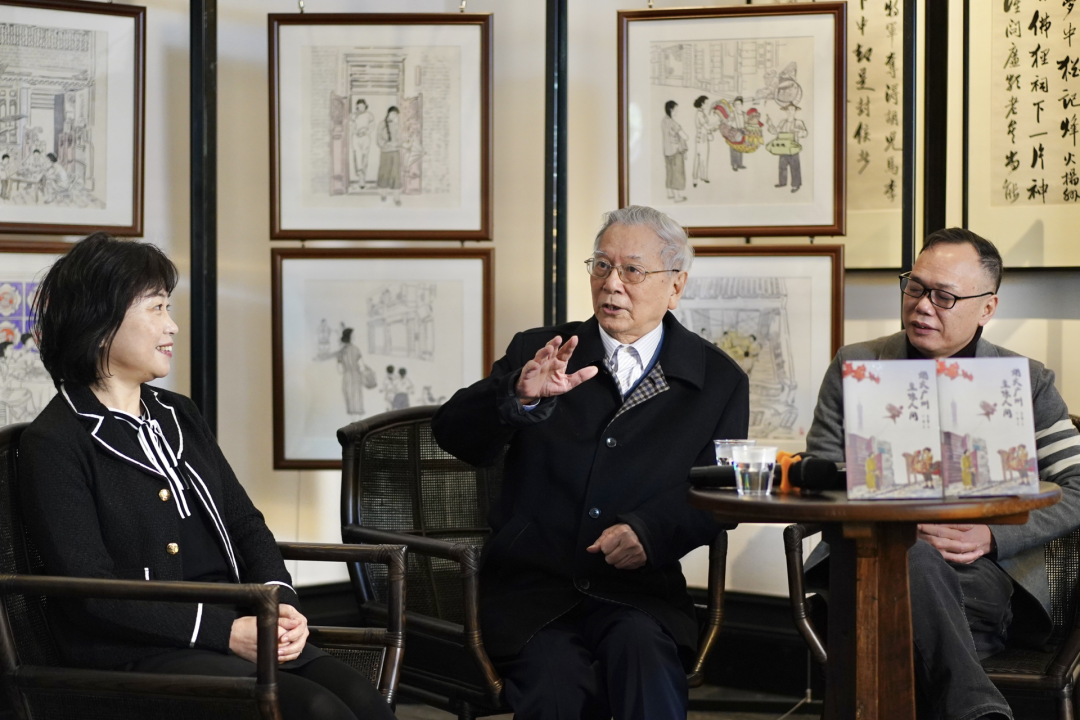 黄天骥教授以《烟火广州 至味人间》为主题,以岭南文化独特的视角,畅谈了一个地道老广对广州人及广州当地文化的热爱。画家江柳做同题绘画艺术分享,通过淡彩手绘艺术,展现老广州的西关大屋、趟栊门、骑楼、茶楼、满洲窗、岭南园林小院等建筑特色。广东旅游出版社社长、总编辑刘志松做为该书的出版人和策划人,与两位作者一起,分享该书的策划初衷和出版故事,以新广州人的视角,讲述广州文化和生活故事。