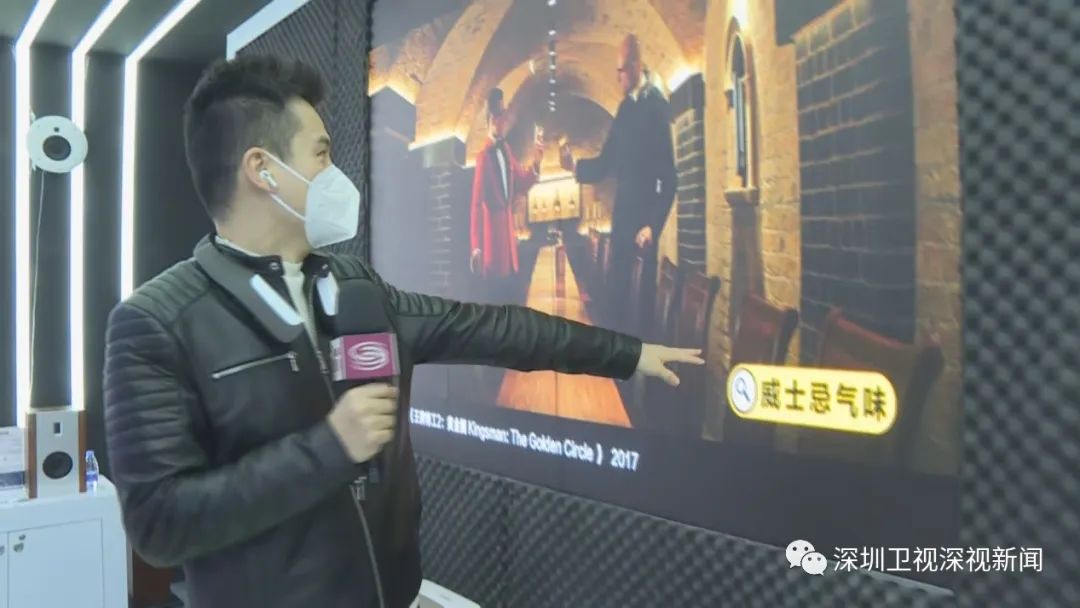 在直播的第一站——宝安展区,一款名为数字气味微电影的创意产品吸引了不少观众驻足。