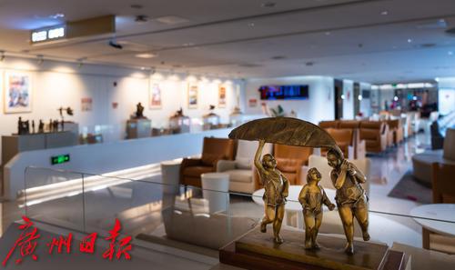 艺术空间是对休息室的服务功能、空间环境、服务设施、服务产品等方面的全方位优化,旅客举杯品茗的同时还能近距离欣赏岭南乃至全国艺术家的刺绣、绘画、雕塑、陶瓷等艺术作品。