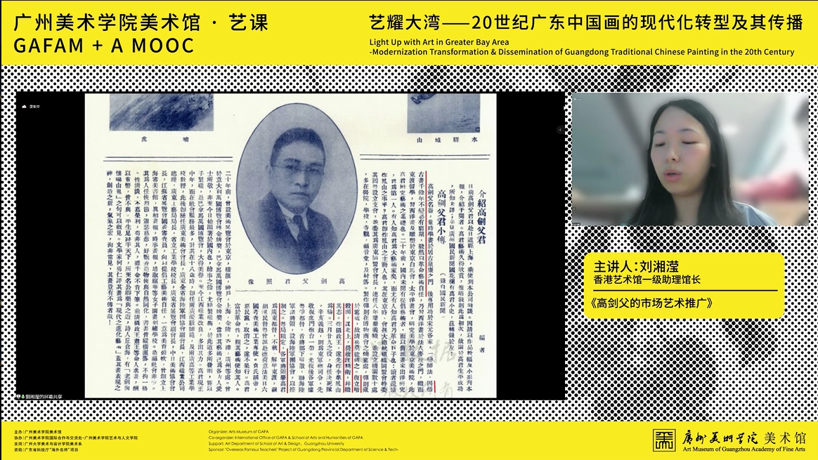 近日,廣州美術學院美術館主辦的「藝耀大灣——20世紀廣東中國畫的現代化轉型及其傳播」最後一講在線上舉行。