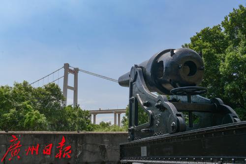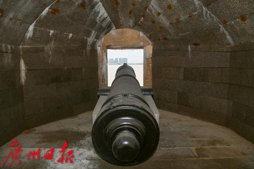 图为上横档岛横档月台的前膛炮。