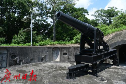 在南沙上横档岛,岛上仍有清光绪十年(1884)时后膛炮池八处及兵房、官厅、库房、坑道等鸦片战争时炮台遗址等。刚上岛,国家重点文物保护单位石碑就映入眼帘,栾成告诉记者,根据1985年国家文物局划定的国家级重点文物保护单位“虎门炮台旧址”的保护范围,鸦片战争期间虎门炮台群有10座炮台,其中4座位于今天的东莞境内,其余6座。