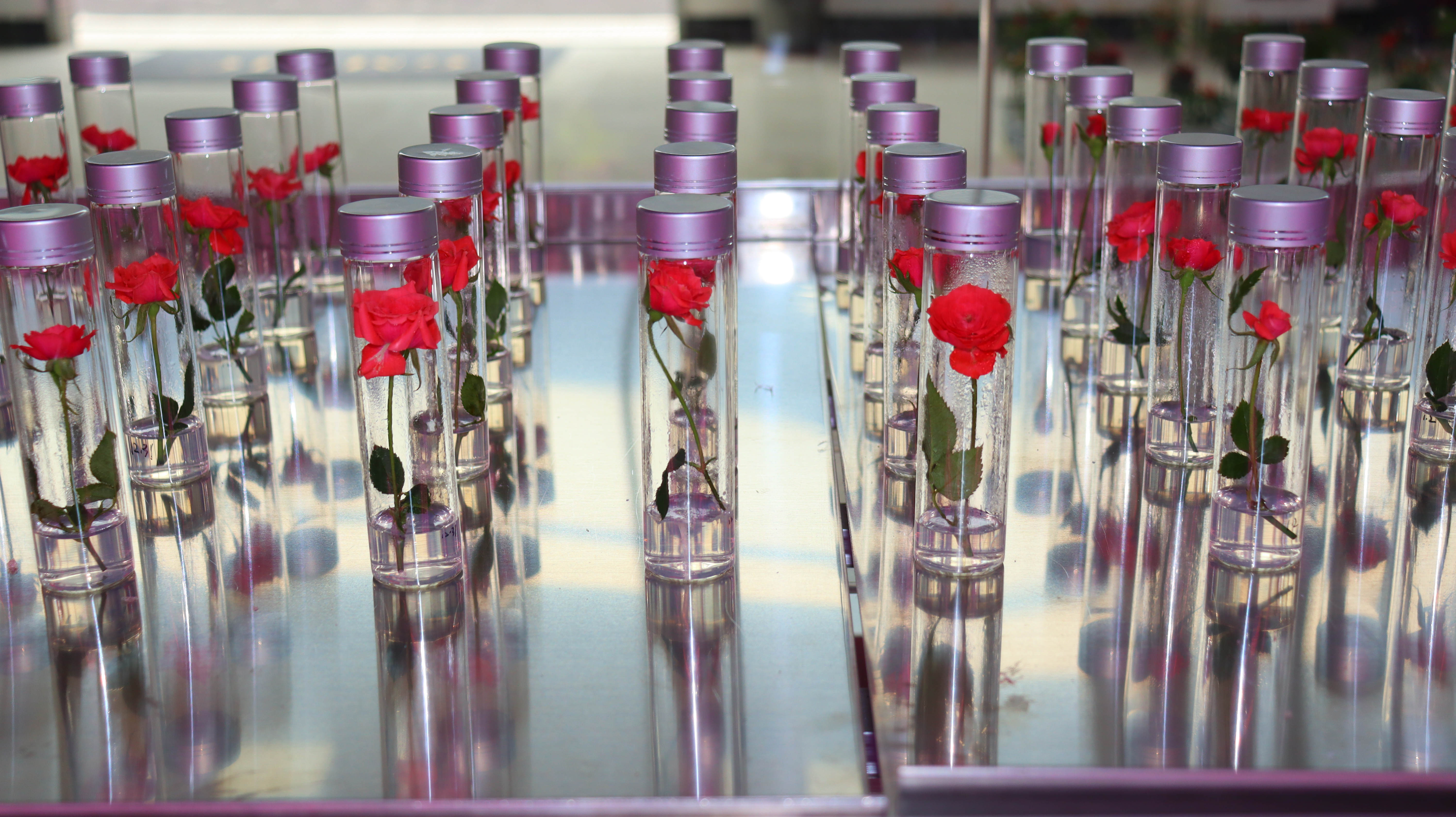 可保持30天不凋谢的“太空微型试管玫瑰”。