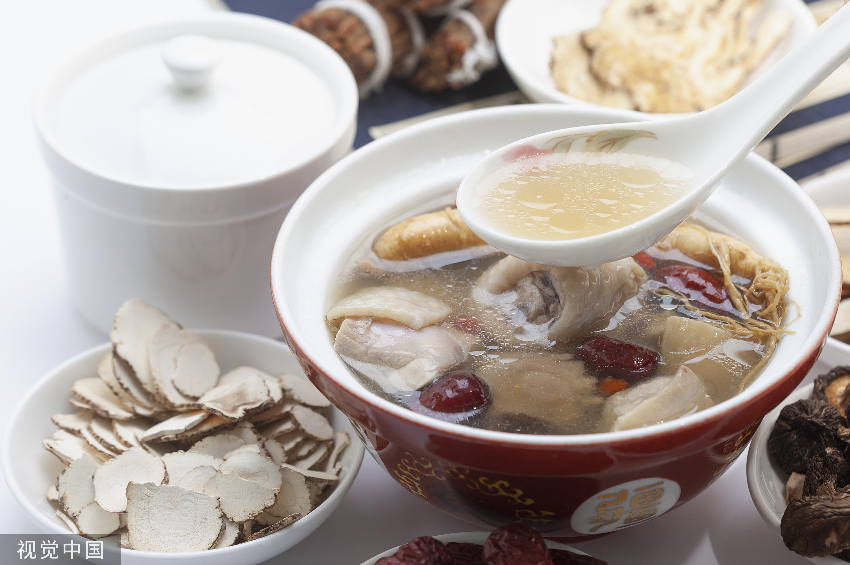 建议可选择北芪、党参、西洋参、人参等药材煲汤;如果是偏阳虚体质的人群,还可以用鹿茸等药材煮水代茶饮,或搭配瘦肉、鸡肉等煲汤,但要注意不能太油腻。
