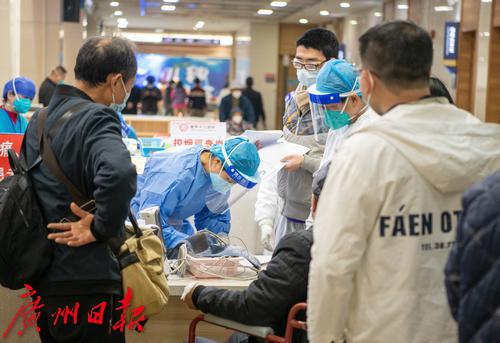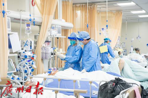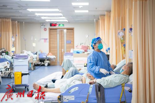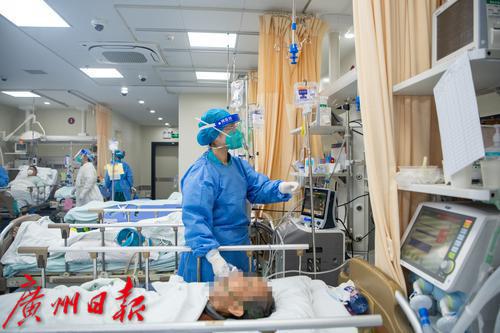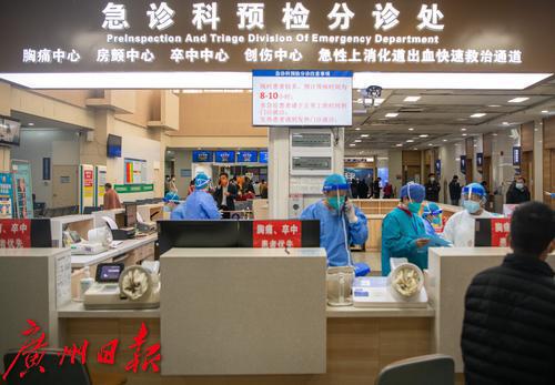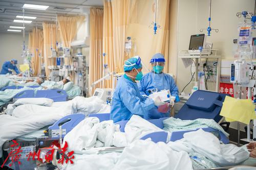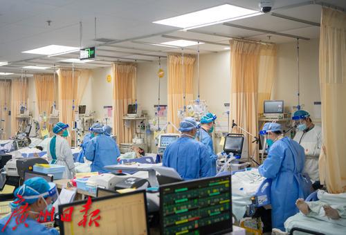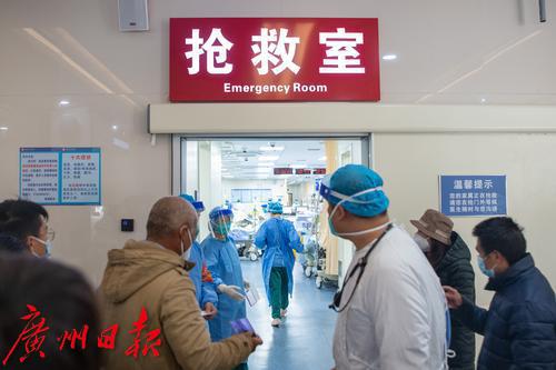 1月4日上午,广州番禺区中心医院急诊大厅,候诊区排长队。“平时急诊量一天250-300人,现在每天350-400人。”该医院急诊科副主任医师陈永华告诉记者,近日医院急诊量大幅增加,特别是感染新冠后基础性疾病有进展的高龄老人患者居多,现在除了疫情感染带来的急诊高峰外,还叠加了冬季心脑血管、心肌梗塞等疾病高发病人。抢救治疗区,大多数病人病情危重,需要循环和呼吸支持,最多的时候二十多台呼吸机在不停地运转。为了最大限度为患者提供治疗资源,急诊抢救室病床“见缝插针”。