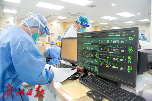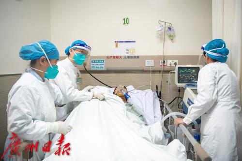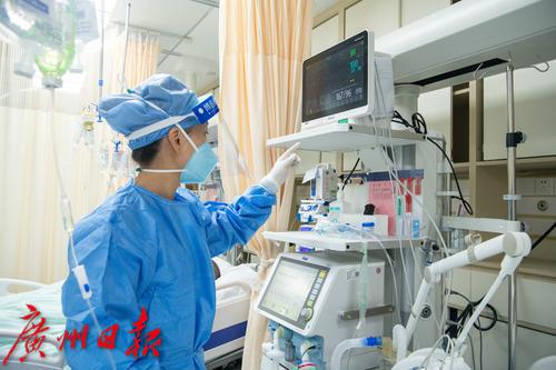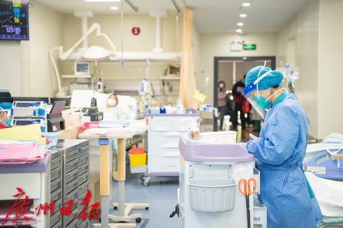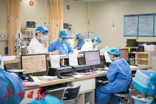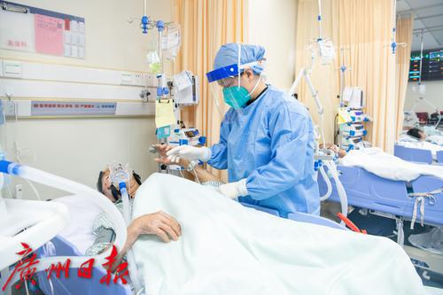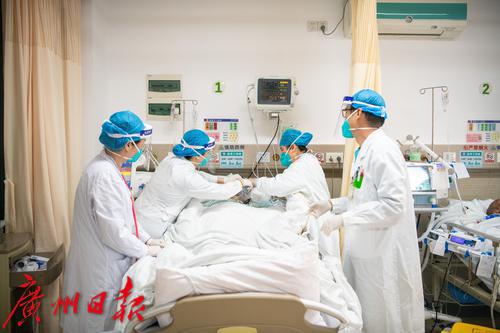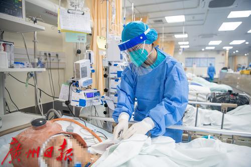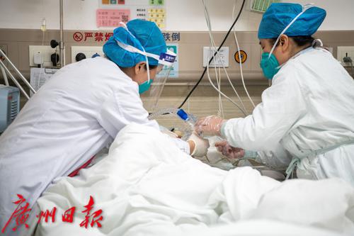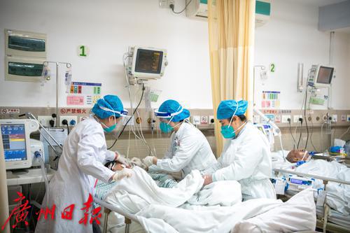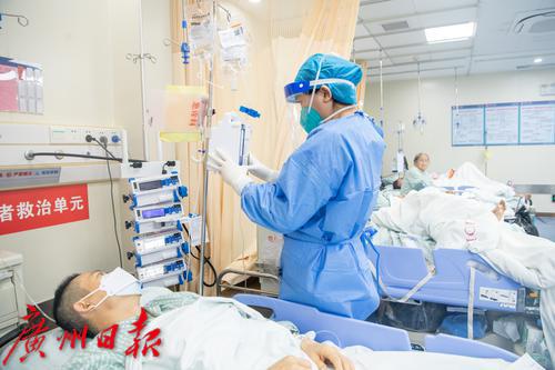 广州番禺区中心医院急诊抢救室内医护人员照顾病人