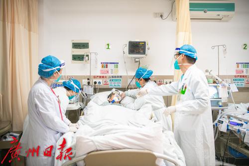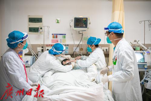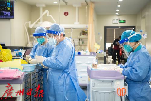 广州番禺区中心医院急诊抢救室内医护人员紧张工作中