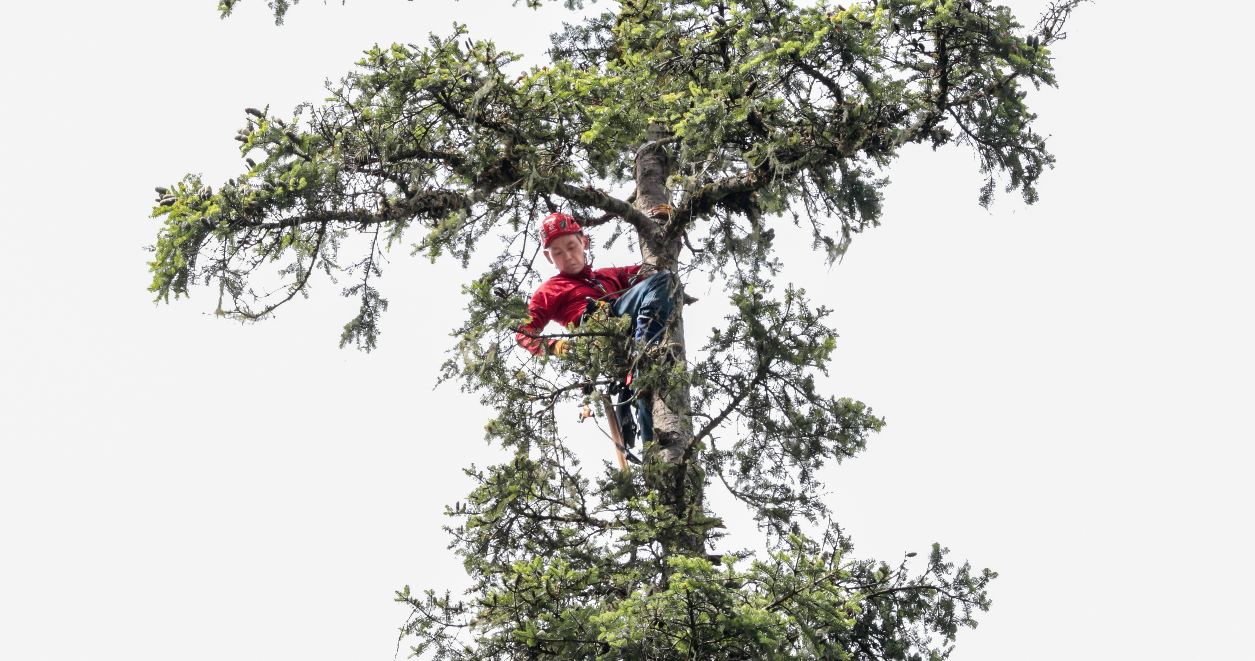 攀爬巨树的首要工序,是要抛投辅绳挂于高处树杈,再牵拉攀登主绳形成双绳系统——这是最关键的环节。而松杉巨树往往在森林树冠层之下无分支,因此最低挂绳高度多在30米以上,需用无人机或弹弓系统抛射,挂好最低处安全绳后,继而由先锋领攀到树顶。刘团玺表示,当天挂绳不太顺利,先后打了13次攀树弹弓才终于将主绳挂于约35米处的大树枝上。接着,刘团玺用辅绳把攀登用的主绳吊到半空中去,先做一个承重测试。随后3名攀树师轮流把4根攀树用的主绳通过攀树抛绳的方式,每次上升3到4米,终于在2022年8月9日中午,他们将全部四根攀登主绳从80米到45米的保护站(以扁带等绕于树干受力)设置完毕。3名攀树师前后花了大约8个小时才最终到达树顶。