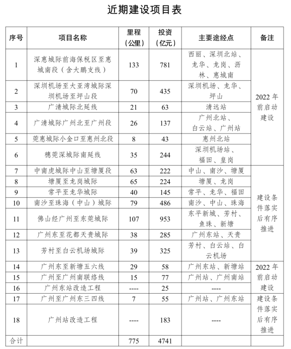 大湾区城际铁路建设规划近期建设项目