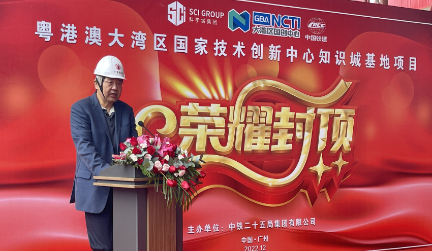 粤港澳大湾区国家技术创新中心主任田宏、副主任王德保,以及项目合作单位科学城(广州)投资集团有限公司、参建单位中铁二十五局集团有限公司等代表出席封顶仪式。