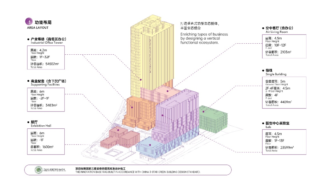项目总建筑面积约13.39万平方米,按照国际超甲级写字楼标准、国家三星级绿色建筑标准设计施工,规划定位构建“创客空间+孵化器+加速器+知识城基地总部”的全链条科技创新生态,建成后将打造成科技创新产业落地与总部项目的高端载体平台。