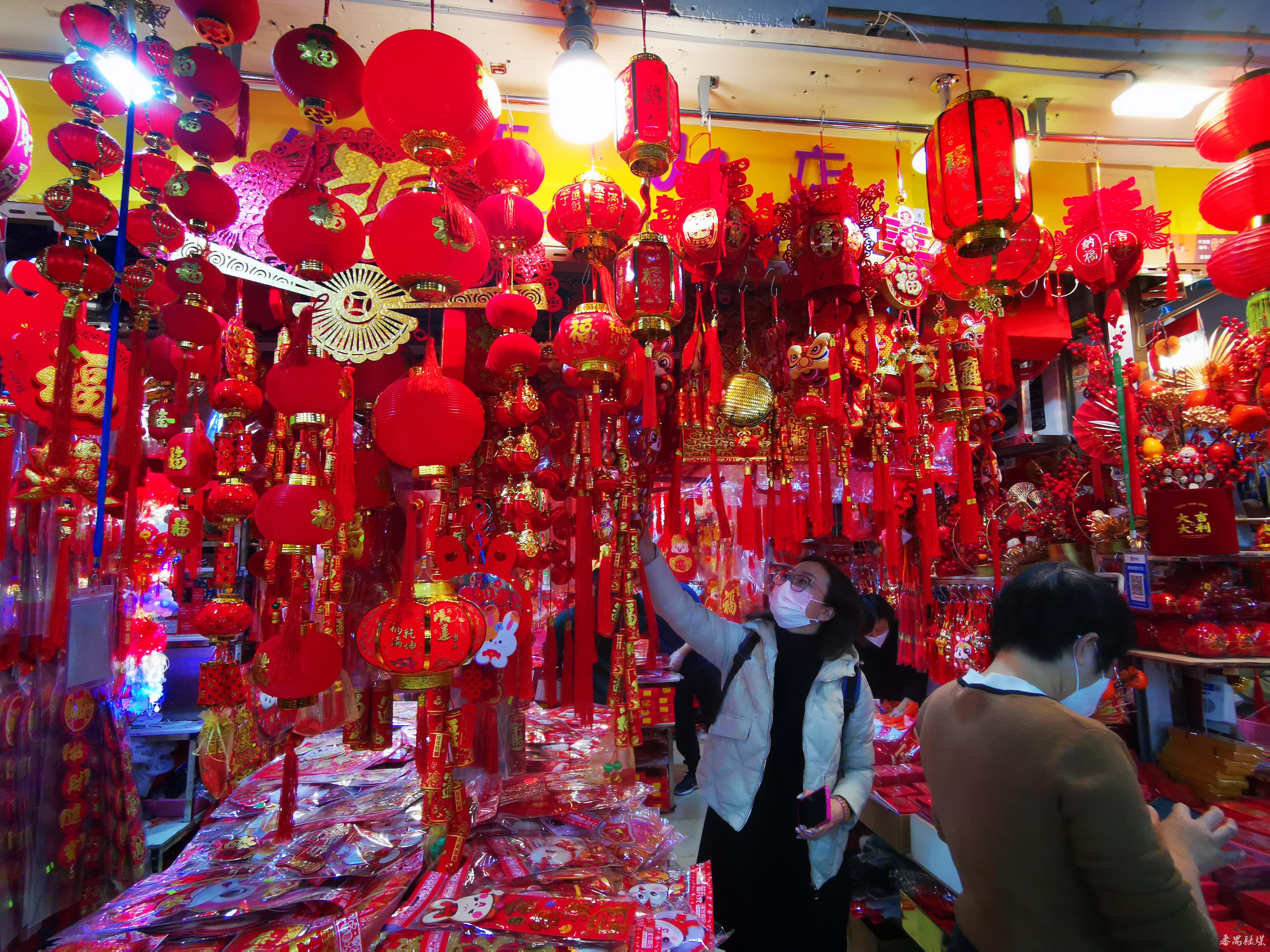 市民在东城市场挑选春节装饰品