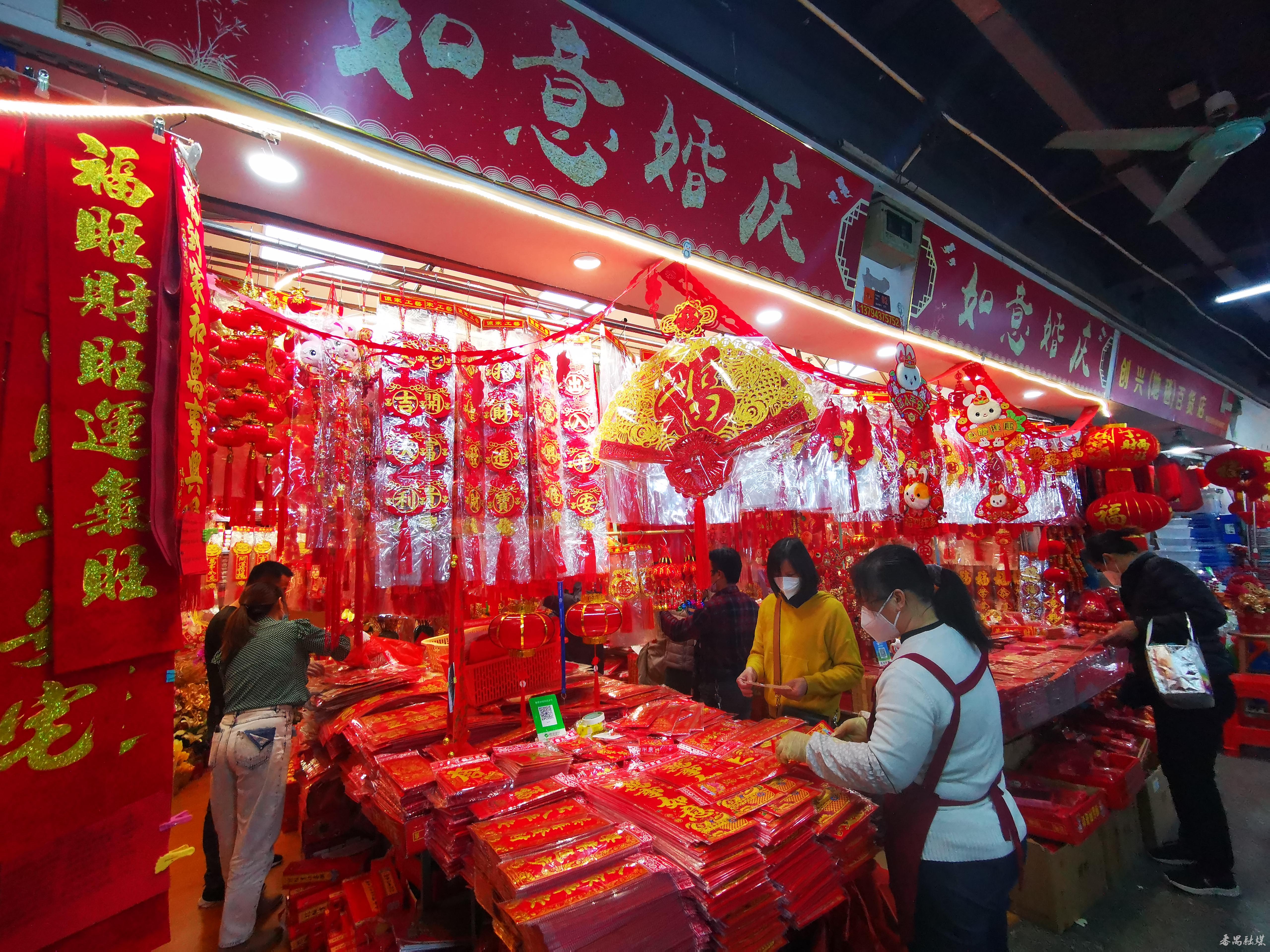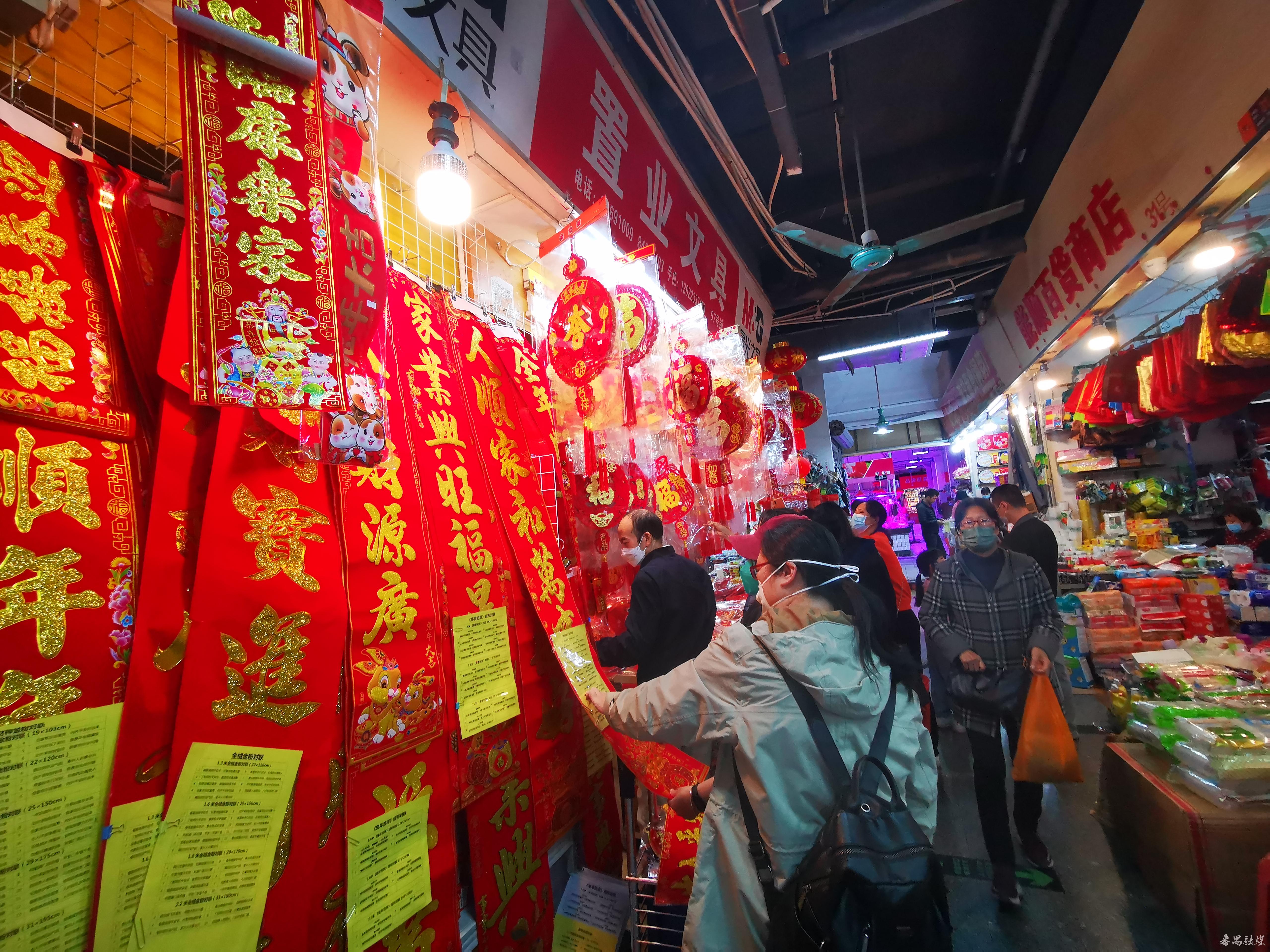 离春节还有约半个月,年货饰品销售逐渐进入高峰期。记者走访番禺商场(超市)、批发市场时看到,春联、灯笼、窗花、利是封、中国结、坚果、曲奇、蛋卷等年货琳琅满目,市民提前选购年货,洋溢着浓浓的年味。
