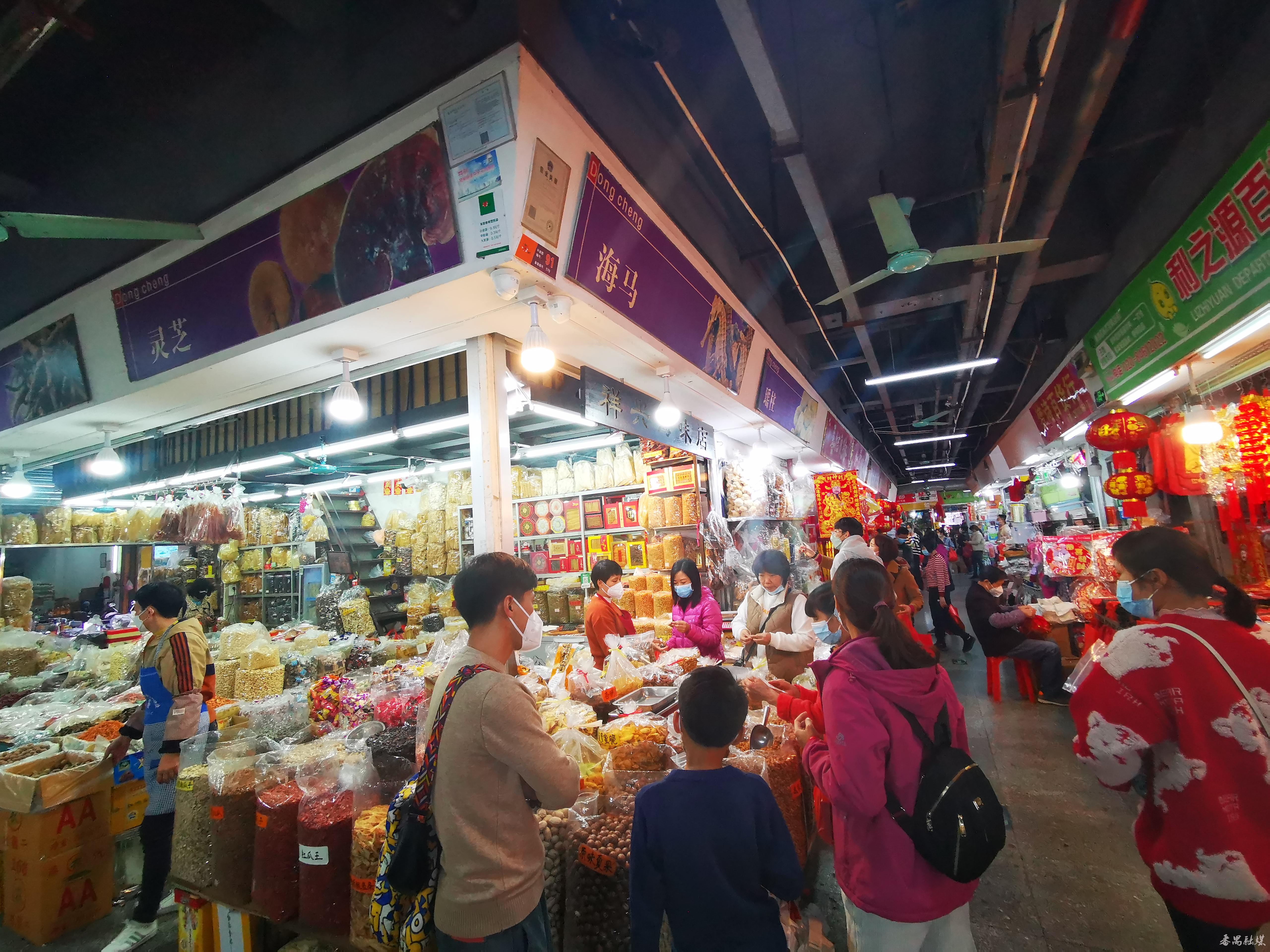 在东城市场副食品经销区,同样热闹非凡,各经销店的里里外外站满了购物的街坊,无论是包装精美的蛋卷、曲奇,还是散装的坚果、山珍海味(干货)等都比较抢手。市民宋大姐说,年货是不可缺少的,提前购置年货,购物环境轻松,有更多的选择,避免在除夕前几天扎堆。