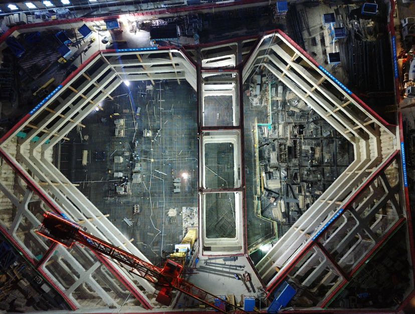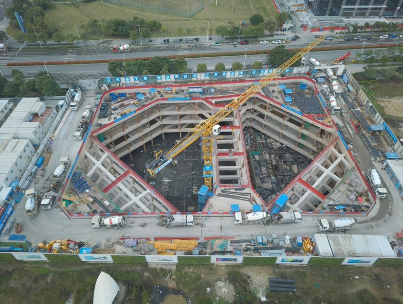 据了解,中建科工前海金融控股大厦项目基坑平均深度达27米,基坑最深处达34.5米,核心筒区域底板厚度最大处达到8.65米,具有浇筑体量大、深基坑、底板厚度大等特点,同时项目周边环境复杂、现场场地狭小,对浇筑现场泵车布置、罐车交通动线等,施工组织协调提出了严格要求。