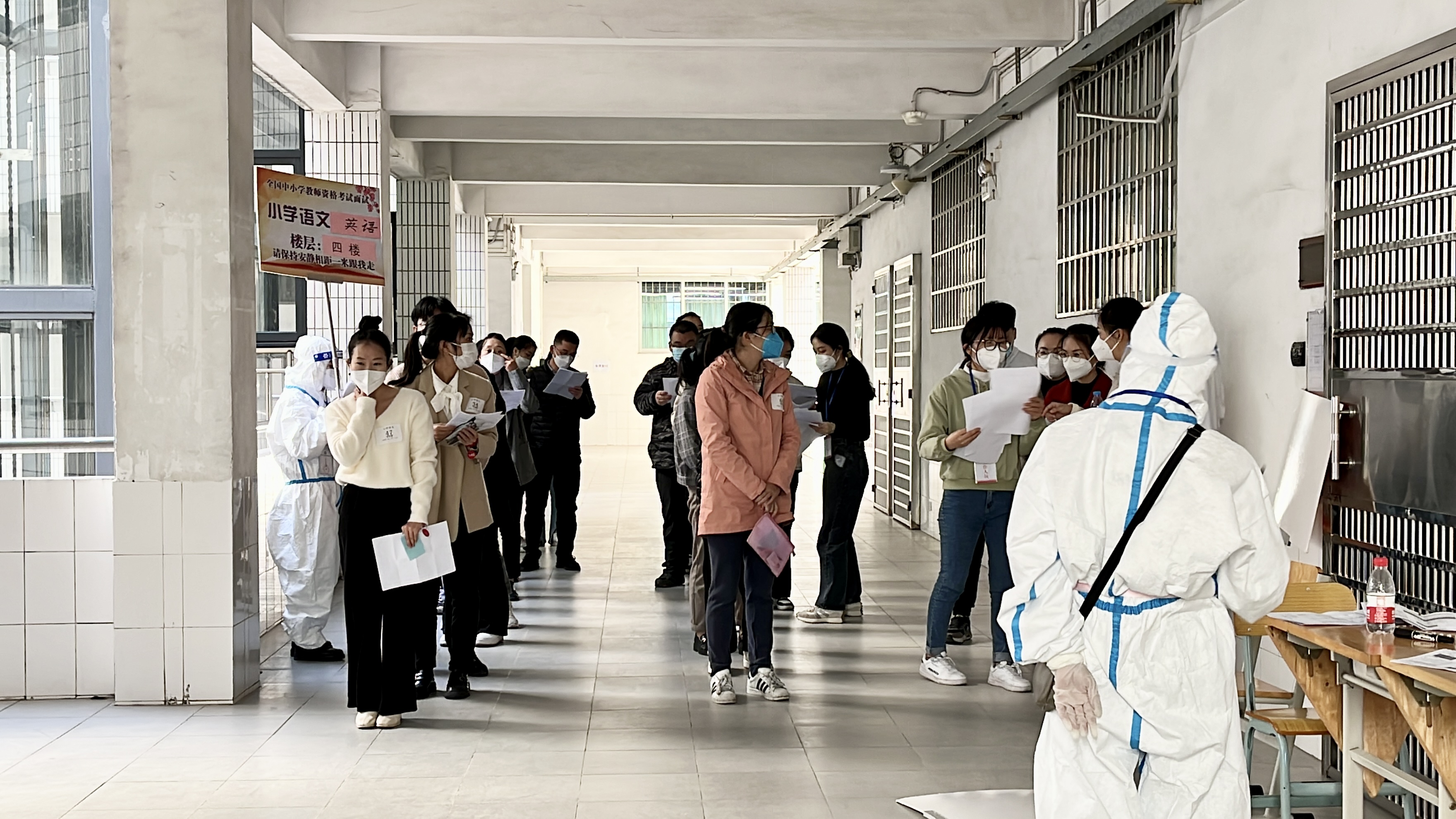 今日前来应考的在职考生小黄本次预备考取小学英语教师资格证。他毕业于广东轻工职业技术学院酒店管理专业,此前已考取了小学数学教师资格证。“工作一年后,感受到英语也是非常重要的科目,因此打算再考一个教师资格证。”