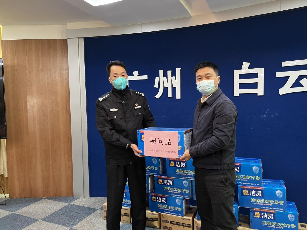 1月4日,在第三个中国人民警察节来临之际,广州市白云区京溪街禁毒协会联合南方洁灵科技实业有限公司一起来到白云区公安分局,向长期奋战在一线的禁毒警察开展送“温暖”· 献“爱心”主题慰问活动,向为国家禁毒事业做出巨大奉献的禁毒警察、禁毒英雄们送上了慰问品和节日的祝福。