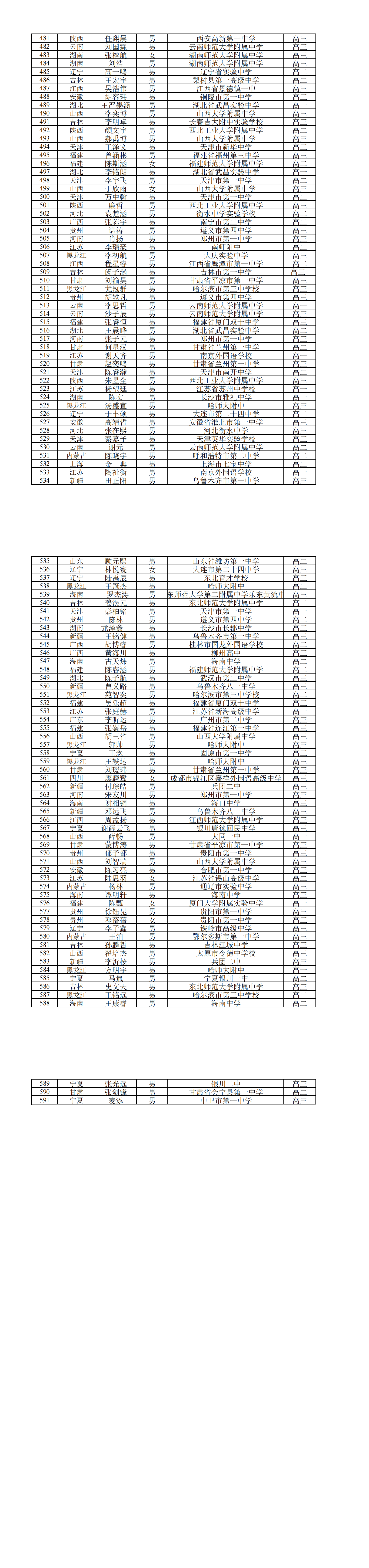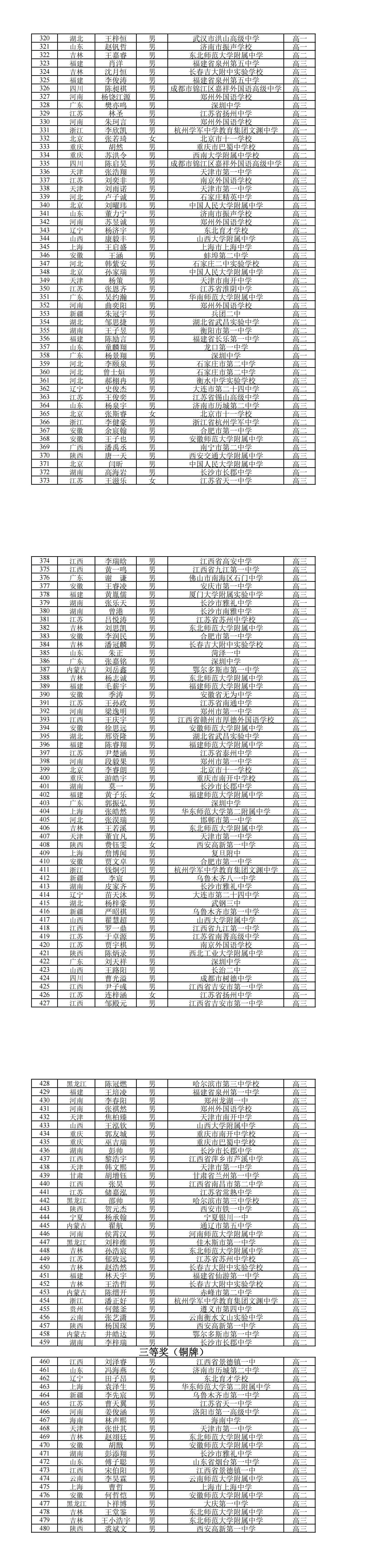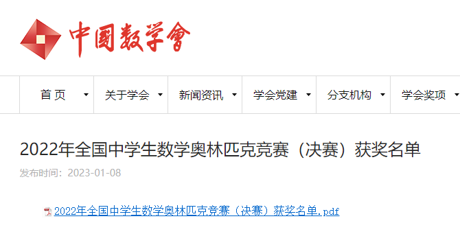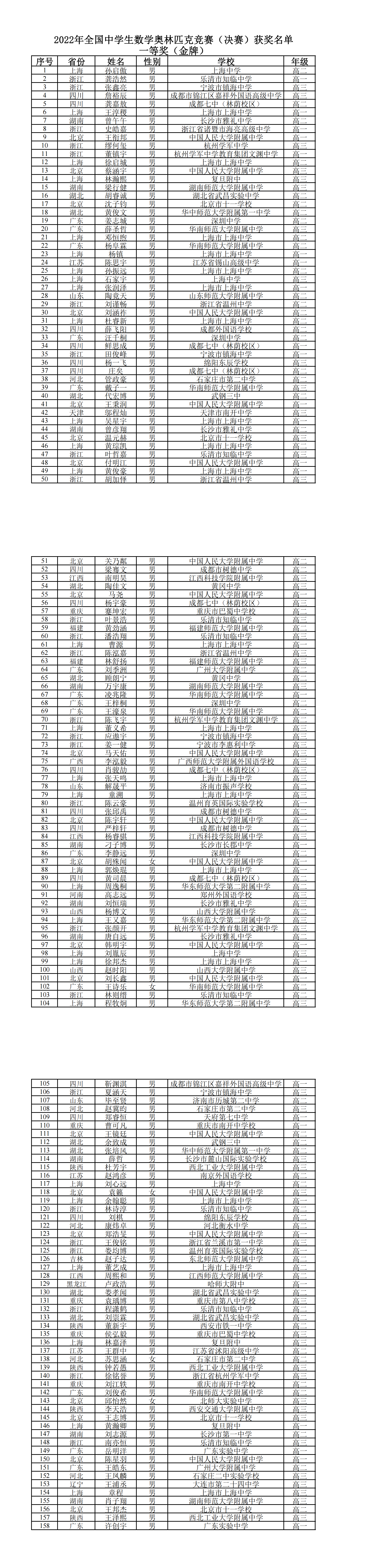2022年全国中学生数学奥林匹克竞赛(决赛)获奖名单如下: