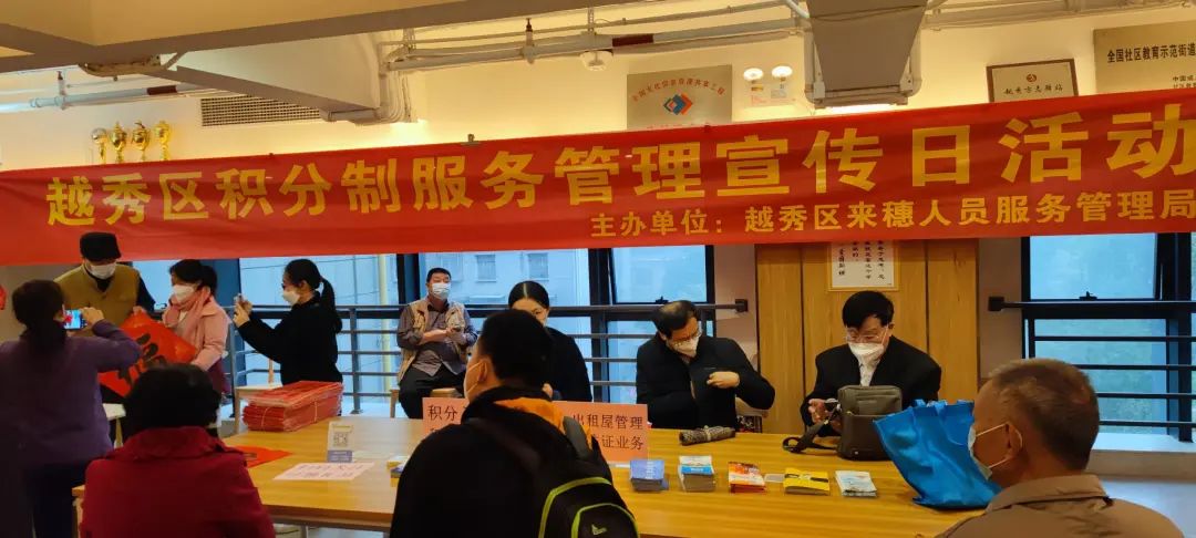为向广大来穗人员及其子女送上新春祝福,越秀区来穗人员服务管理局携手大塘街出管中心在现场设置了多个摊位,结合最新的《广州市积分制入户管理办法》,为来穗人员提供积分制政策咨询、出租屋消防安全、居住证办理咨询等服务。