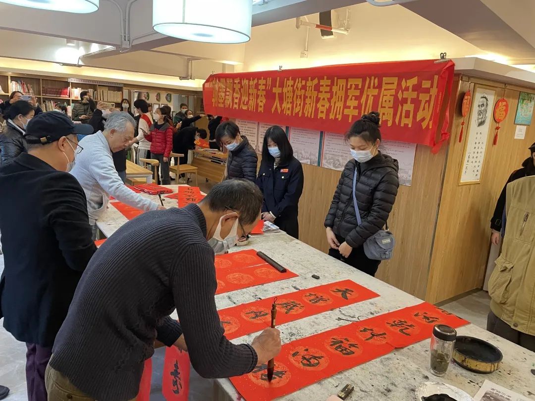 每年春节前,挥春送福都是必不可少的社区活动之一,今年也不例外,1月9日,越秀区大塘街道办事处携手越秀区图书馆、区来穗人员服务管理局在大塘街党群服务中心(东方文德广场六楼)举办了新春送福等一系列新时代文明实践活动。