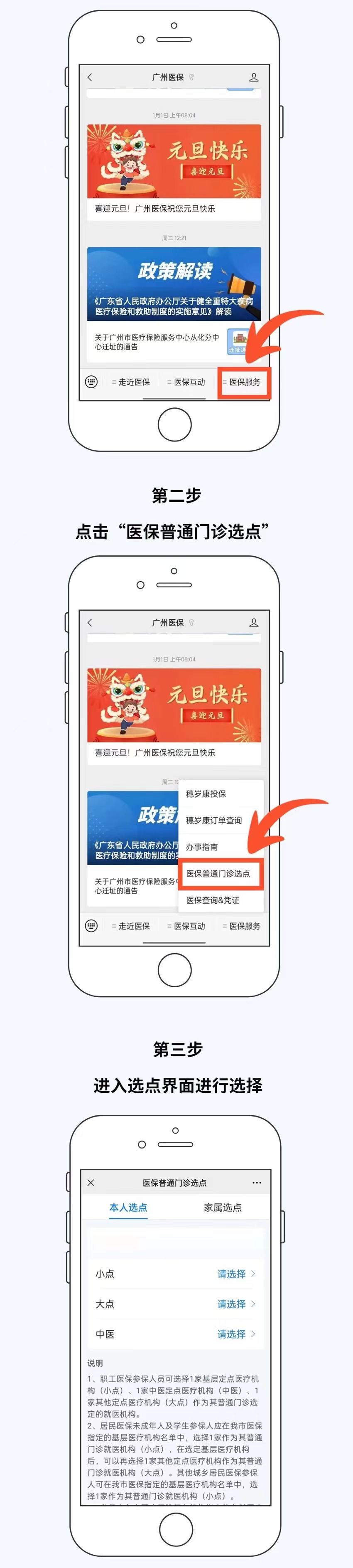 小tips:街坊们如果去年办理过选点手续,且今年不需要改点的,无需重新办理选点,可直接在去年定点的医院进行门诊就医结算(医保信息系统按规定确认参保人续点)。