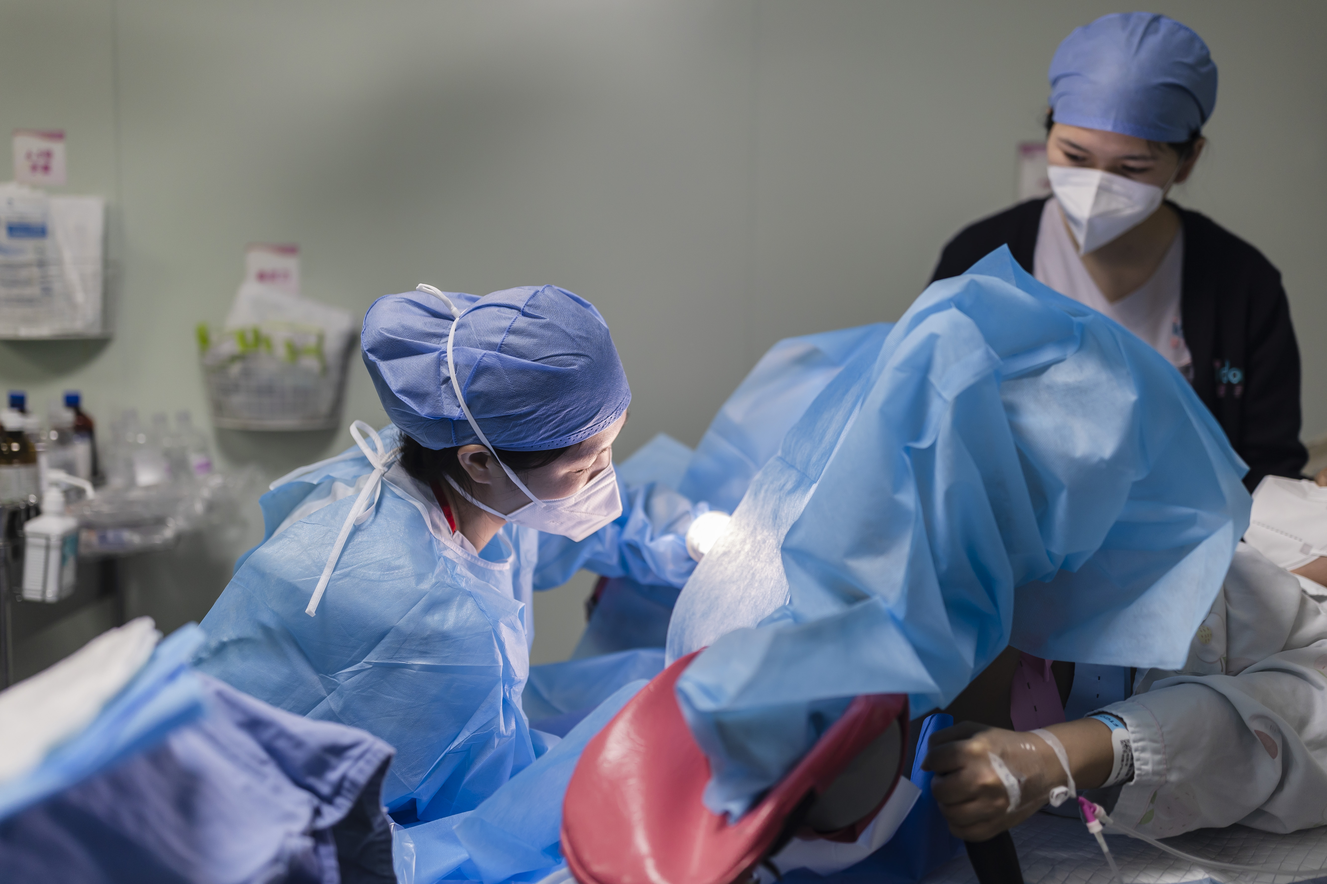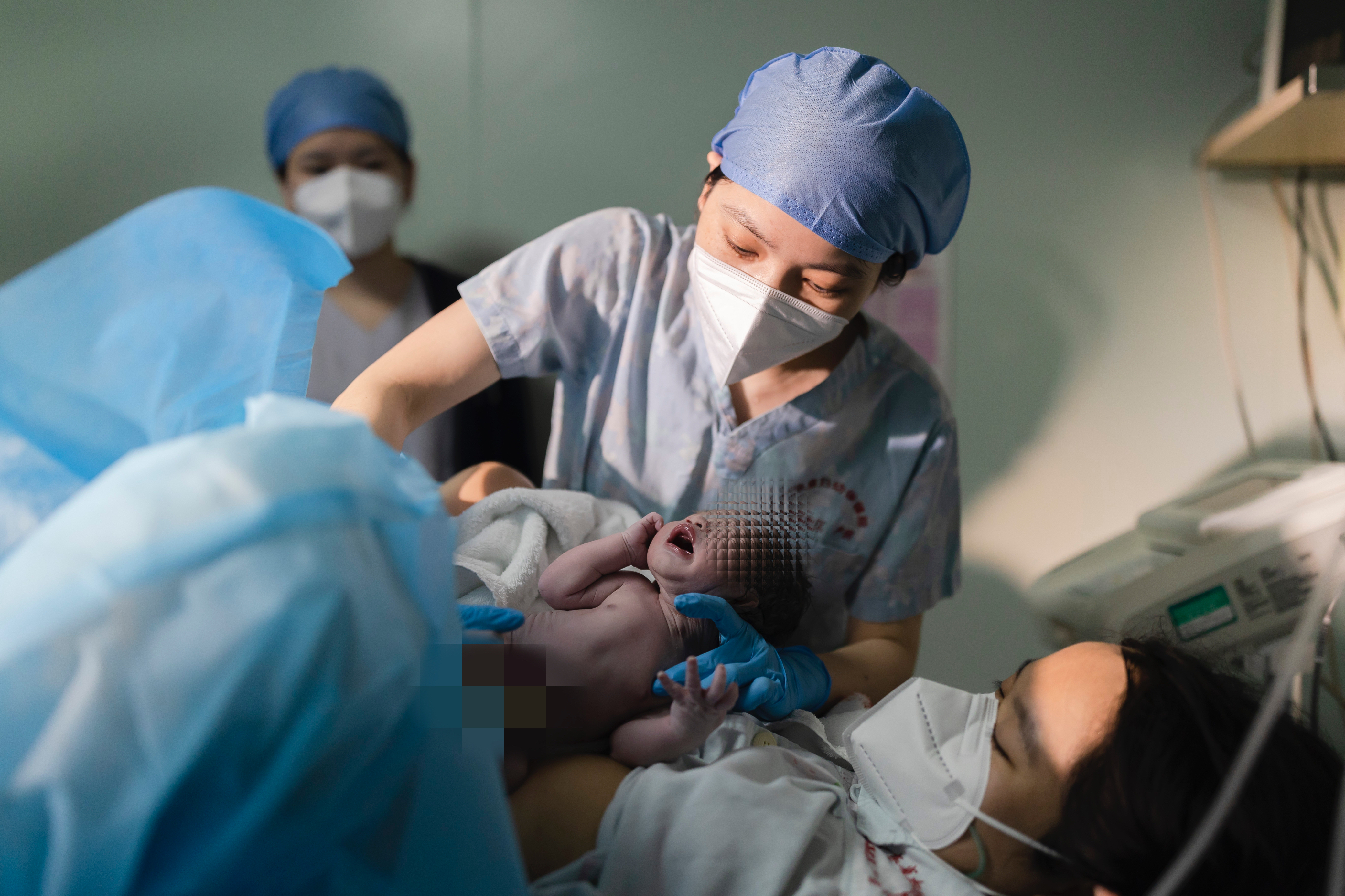 “很棒,坚持住,来,吸气,宝宝准备出来了,轻轻用点力……”1月5日上午,广东省妇幼保健院番禺院区产房一间分娩室里,27岁的产妇林女士(化名)在助产士的指引下调整着发力节奏,产床一侧,导乐师不时俯身向她介绍分娩进程,麻醉医生则在分娩室入口的工作台处全程守护。人声之外,由中央音乐调控系统播放的舒缓轻音乐清晰入耳。9点58分,一声响亮的婴儿啼哭响彻产房,母子平安,林女士顺利分娩。