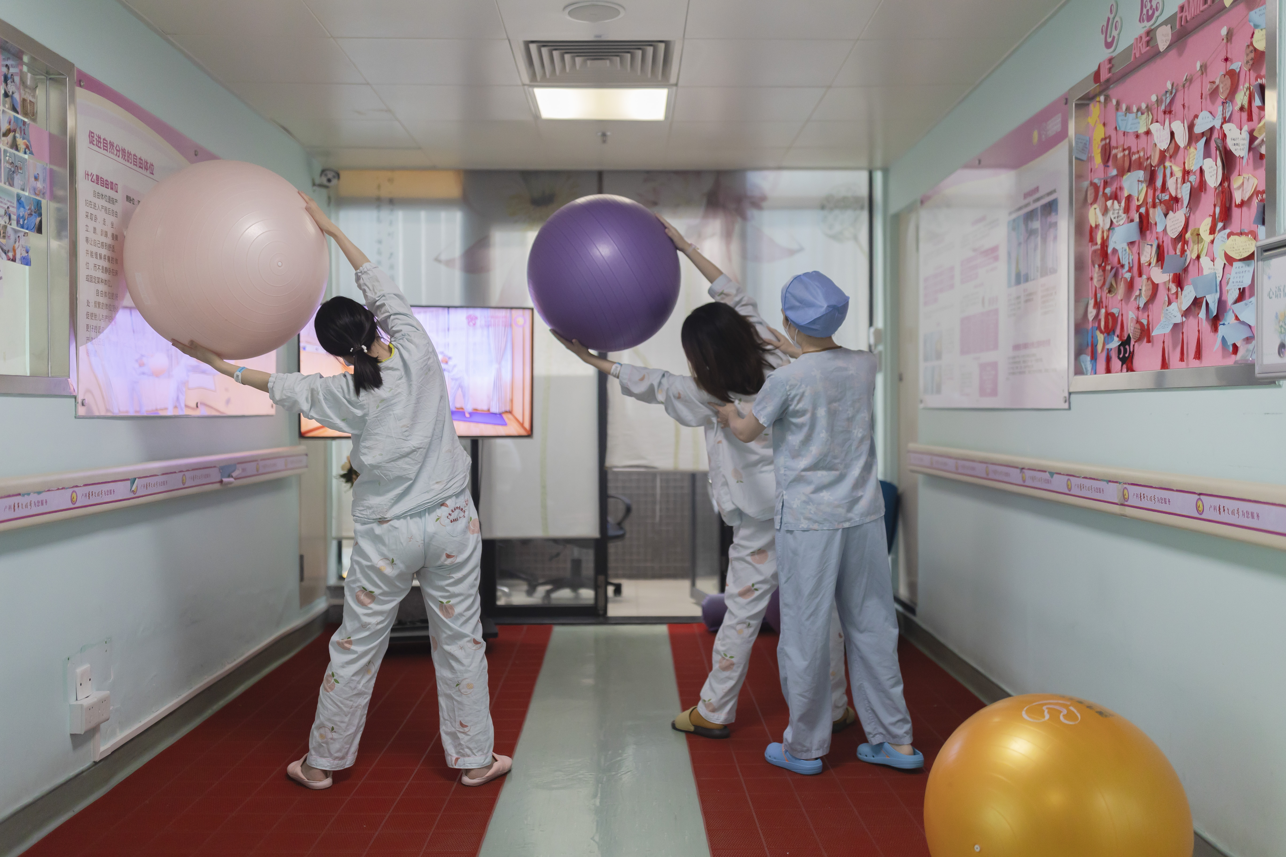 当天的产房并不算忙,除了分娩室里的几名产妇,待产区还有十多位准妈妈在为分娩做着准备,整个产房安静而有序,衬得正播放着的轻音乐更显突出。即便是在有数位产妇的分娩室里,也没有听到一声喊叫。记者忍不住感慨:“和印象中的产房太不一样了。”