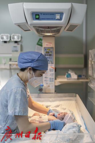 “很棒,坚持住,来,吸气,宝宝准备出来了,轻轻用点力……”1月5日上午,广东省妇幼保健院番禺院区产房一间分娩室里,27岁的产妇林女士(化名)在助产士的指引下调整着发力节奏,产床一侧,导乐师不时俯身向她介绍分娩进程,麻醉医生则在分娩室入口的工作台处全程守护。人声之外,由中央音乐调控系统播放的舒缓轻音乐清晰入耳。9点58分,一声响亮的婴儿啼哭响彻产房,母子平安,林女士顺利分娩。