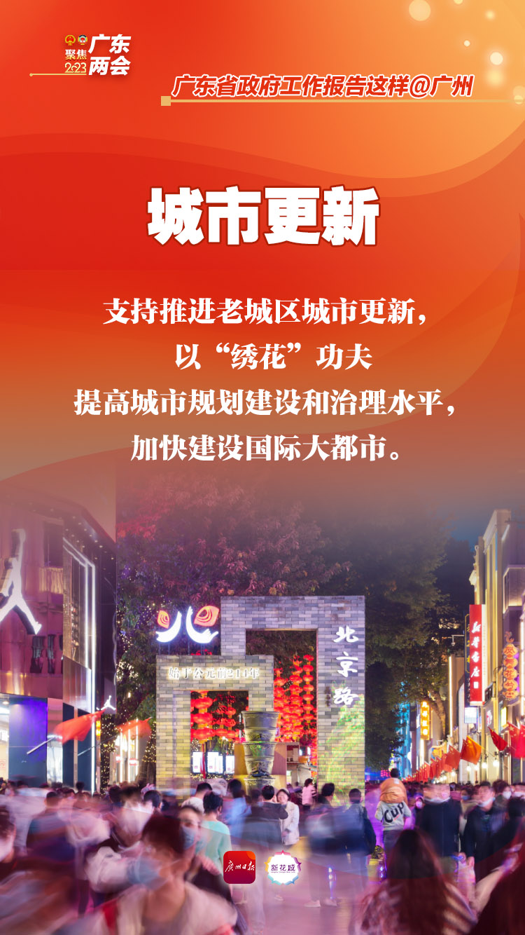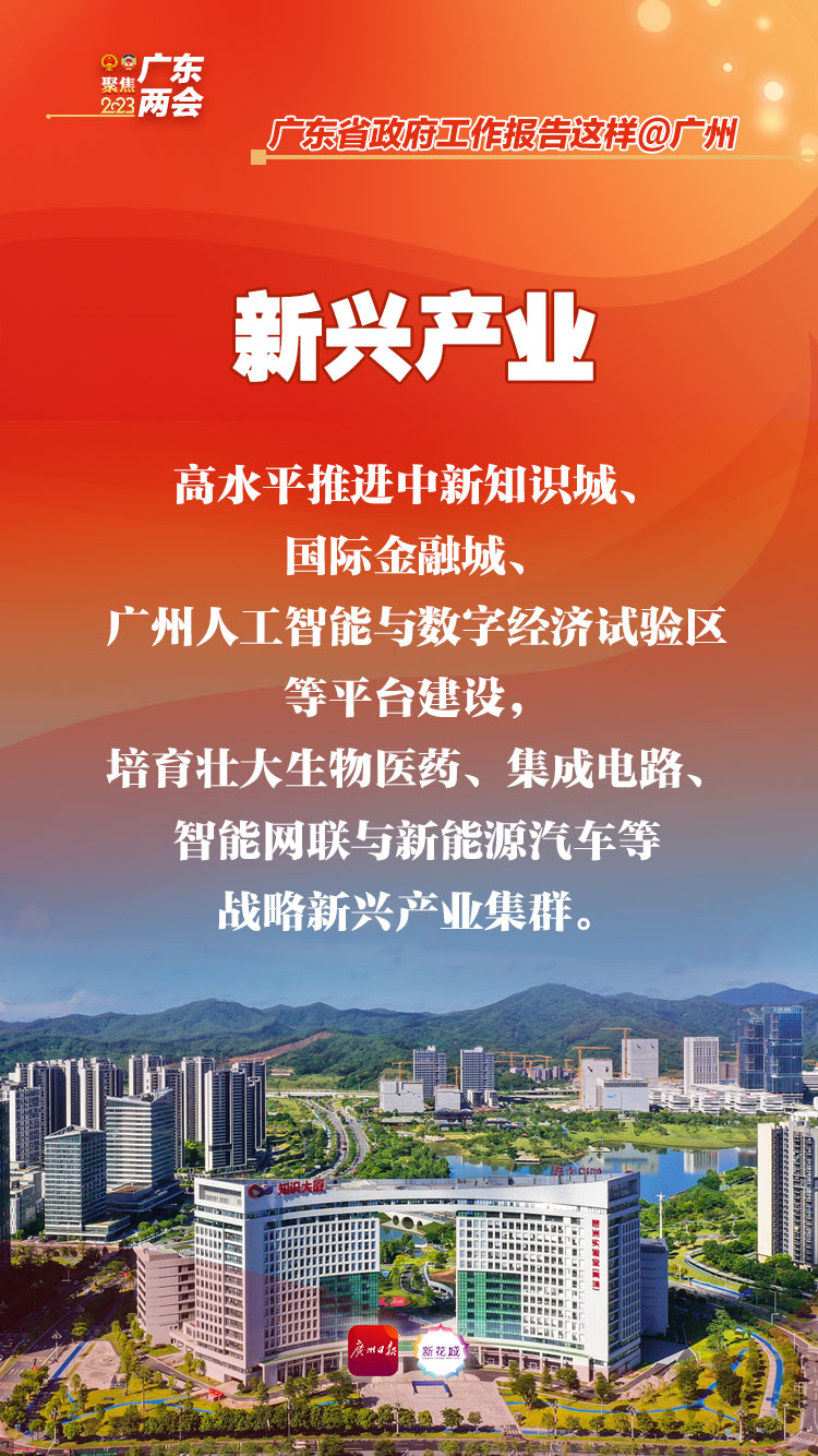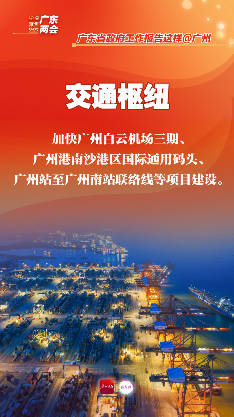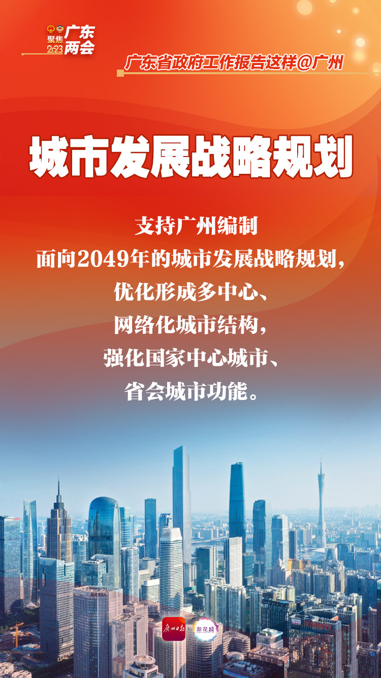 报告中多处提及广州。2023年,广东省将支持广州高质量实现老城市新活力、“四个出新出彩”。支持广州编制面向2049年的城市发展战略规划,优化形成多中心、网络化城市结构,强化国家中心城市、省会城市功能。支持规划建设科技创新走廊,抓好人类细胞谱系、冷泉生态系统等重大科技基础设施建设。高水平推进中新知识城、国际金融城、广州人工智能与数字经济试验区等平台建设,培育壮大生物医药、集成电路、智能网联与新能源汽车等战略新兴产业集群,全面开展国家服务业扩大开放综合试点,提升现代服务业发展能级。加快广州白云机场三期、广州港南沙港区国际通用码头、广州站至广州南站联络线等项目建设。支持推进老城区城市更新,以“绣花”功夫提高城市规划建设和治理水平,加快建设国际大都市。