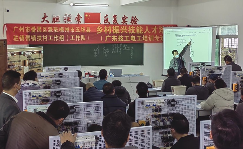 党的二十大报告指出,“加快建设农业强国,扎实推动乡村产业、人才、文化、生态、组织振兴”“发展乡村特色产业,拓宽农民增收致富渠道”“巩固拓展脱贫攻坚成果,增强脱贫地区和脱贫群众内生发展动力。”番禺区派驻五华县驻镇帮镇扶村工作组通过深入学习领悟党的二十大精神,充分地认识到,实施对口帮扶,巩固拓展脱贫攻坚成果,不仅是要向五华地区“输血”,还要“造血”,关键是要让脱贫群众掌握就业技能,增强他们的就业能力。工作组要依托番禺的师资力量和各种有利资源,为五华地区脱贫群众谋福利。