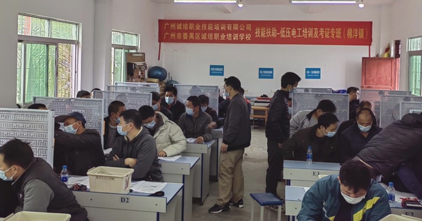 日前,工作组联系上了广州市番禺区诚培职业培训学校,该校在成人技能培训方面具有较强实力。值得一提的是学校负责人也是五华籍,他对家乡怀有深厚的感情,总想找机会报答家乡人民。当他了解到工作组的计划打算以后,立刻表示全力支持,愿意免费为五华脱贫群众提供电工培训。