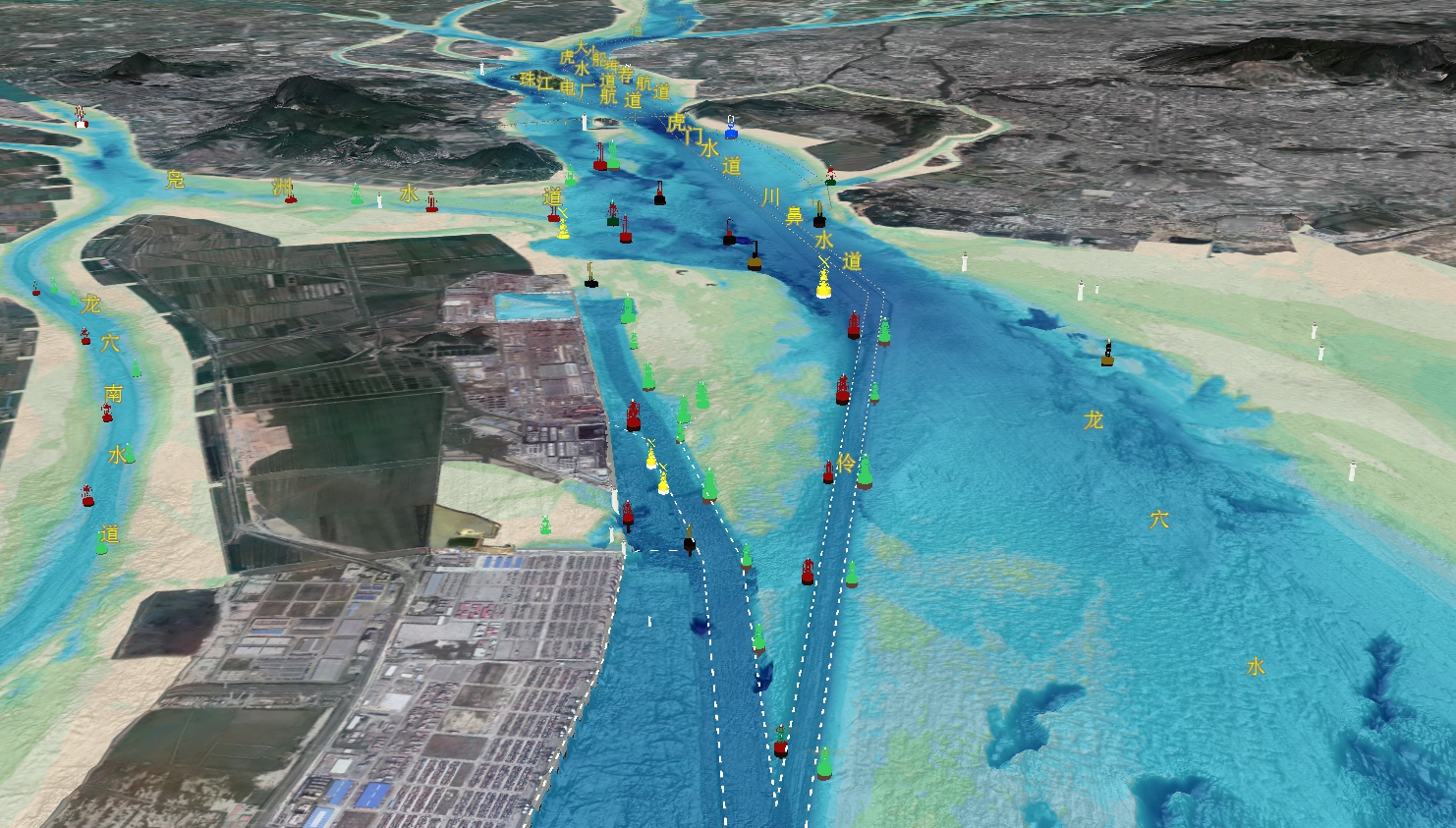 广州港环大虎岛公用航道工程批复概算总投资13.6亿元。工程位于珠江口伶仃洋-狮子洋,南起广州港南沙港区(伶仃航道折点G),北至大虎岛附近,航道全长约为33.3千米,工程范围包括南沙作业区至小虎作业区的主航道段和环大虎岛西侧公用航道段,共同形成平面形状类似“Y”字形的航道。