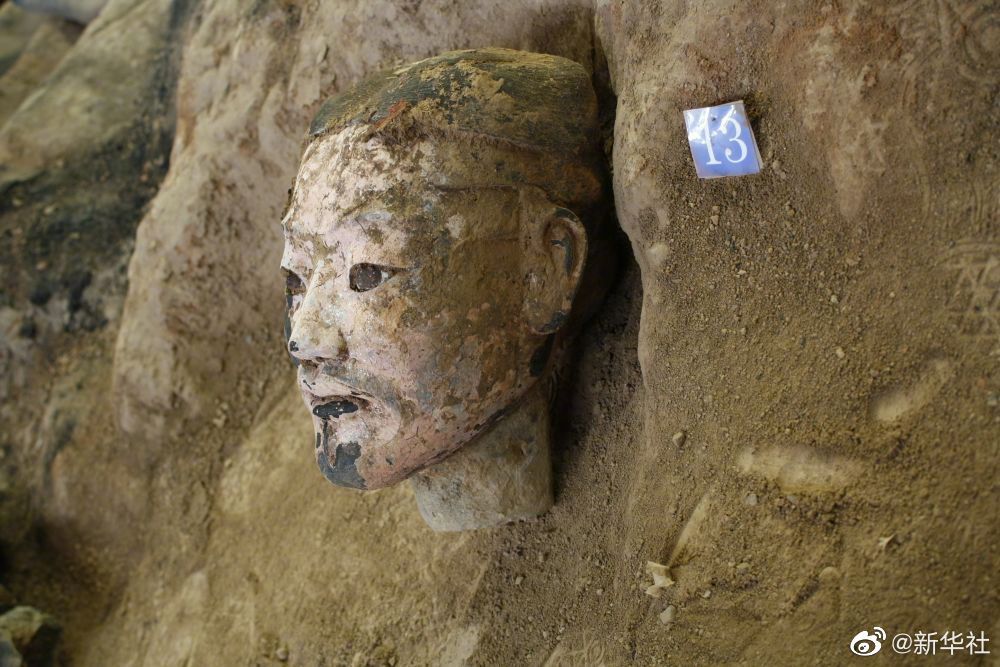 这是一号坑第三次考古发掘发现的彩绘俑头。