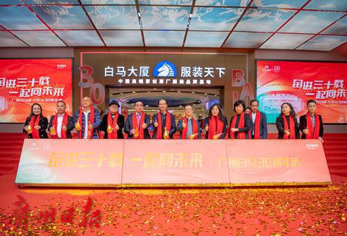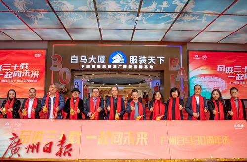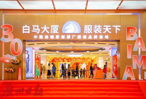 1月8日,白马迎来三十周年庆典。行业协会人士、国内知名服装设计师、全国各地的采购商、时尚买手等众多嘉宾齐聚现场,一同为白马送上三十周年庆的祝贺。周年庆当天,现场人头攒动,经济复苏的积极信号正强力显现。白马开启新春购物节活动,通过发放消费券、派发礼品等方式促进消费扩容提升,助力广州国际消费中心城市的建设。1993年,白马作为全国首个入室经营的现代化服装专业市场,开拓了服装个体户全新的经营模式,仅一年时间,即在广州地区超亿元市场评比中排名第一。30年来,白马多次获得中国服装品牌孵化基地,全国、省、市文明市场,中国十大服装批发市场,广东省商品交易竞争力五十强市场、广东省服装服饰行业最具竞争力市场、广东省流通龙头企业等多项荣誉称号。创新引领服装市场的发展,巩固服装行业标杆市场的地位,白马在经营模式、品牌孵化等方面持续引领中国服装专业市场的发展。