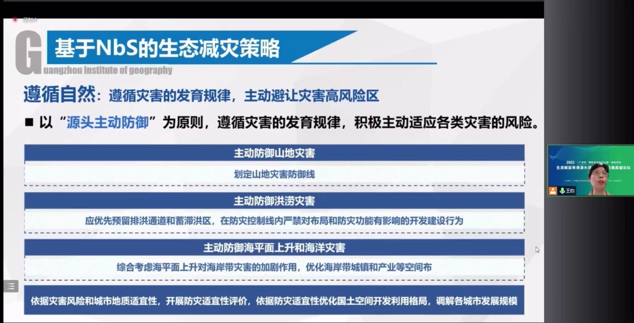 论坛上,广东省科学院广东地理研究所然地理与资源环境研究部主任宫清华做了题为《粤港澳大湾区自然灾害风险与生态减灾策略》的报告。