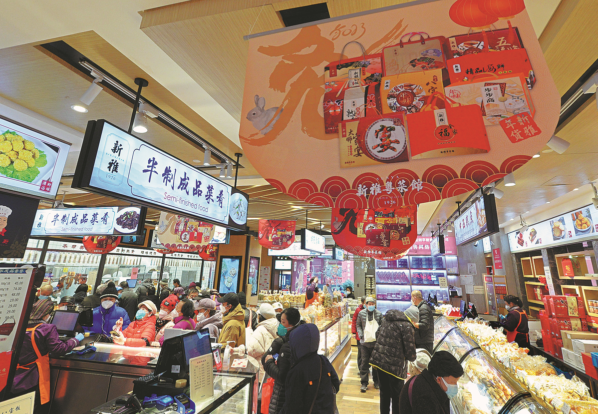Shoppers buy ready-to-cook products in preparation for upcoming Chinese Lunar New Year's Eve at a restaurant in Shanghai. YANG JIANZHENG/FOR CHINA DAILY