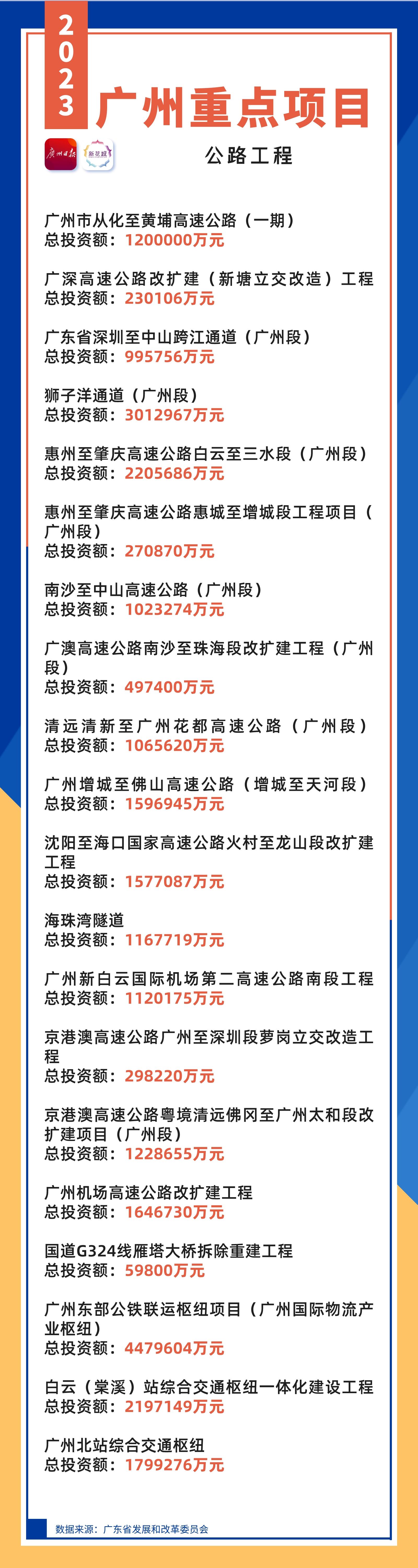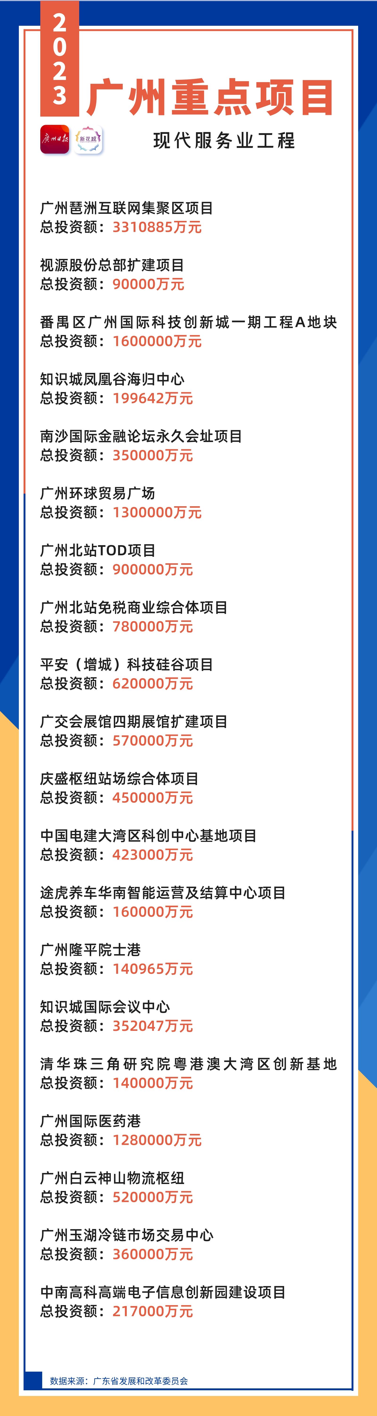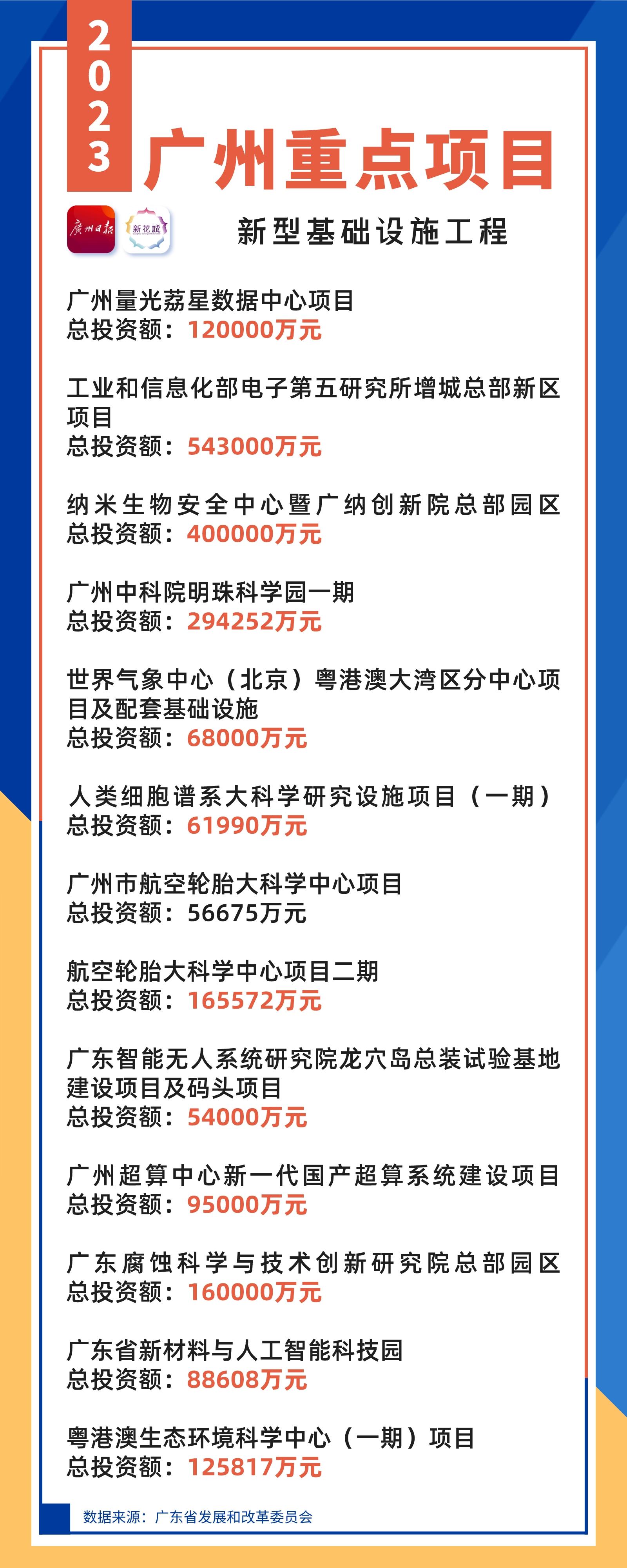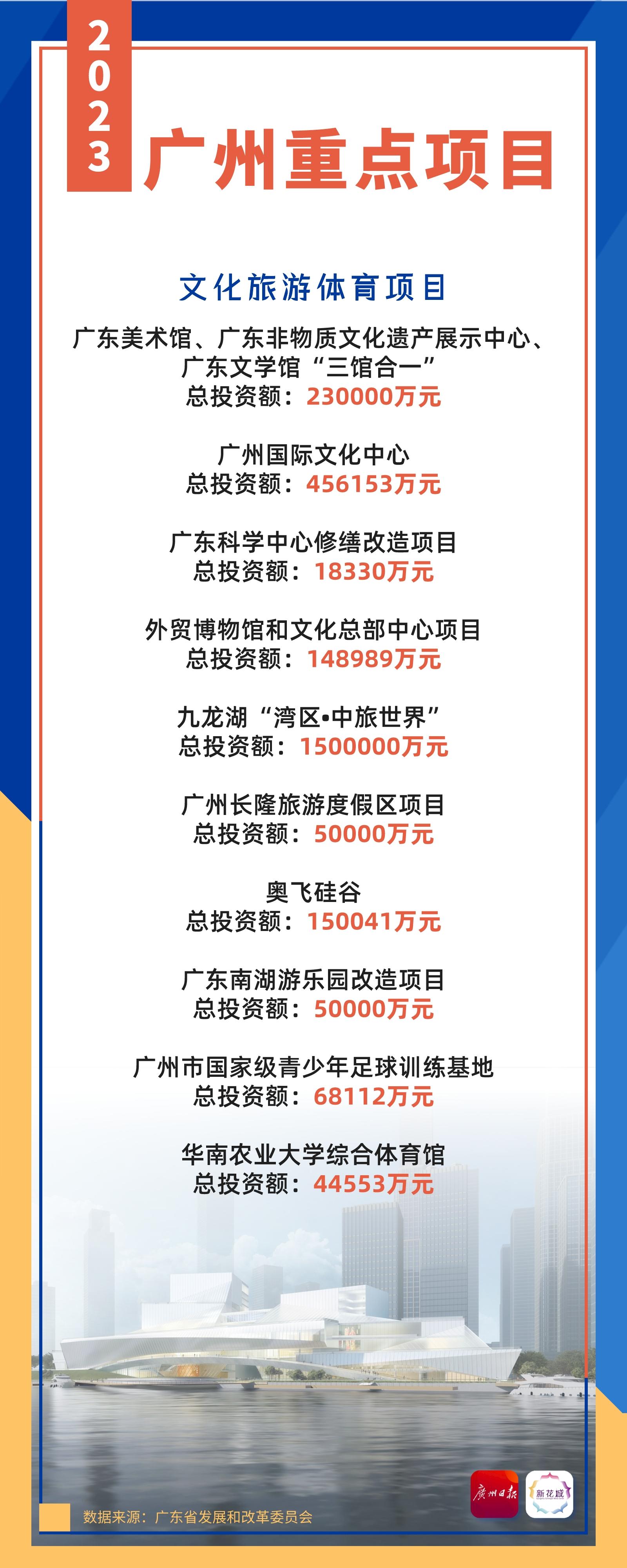 2023年,广东省全年安排省重点建设项目1530个、年度计划投资1万亿元。其中,广州将干这些重点项目: